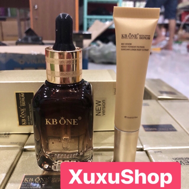 KBONE SERUM 15 - 30ML : ( Thành Phần: Collagen & Hạt Ngọc Trai) - Tinh Chất Kbone Serum : Chứa hàm lượng cao collagen được chiết xuất từ dịch nhầy ốc sên, tinh nghệ, mật ong chưng cất cùng những hạt ngoc trai được chọn lọc kỹ lưỡng. Nên chứa rất nhiều khoáng chất và vitamin với các phân tử siêu nhỏ, thẩm thấu nhanh và sâu vào tận các lớp tế bào da bên trong, nuôi dưỡng làn da từ gốc tới bề mặt, sẽ mang đến cho bạn những lợi ích bất ngờ: + Giảm quá trình lão hóa. Se khít lỗ chân lông + Tái tạo lại làn da bị hư tổn, trị thâm hiệu quả. + Hổ trợ trị: mụn, nám & các vết chân chim. + Cung cấp dưỡng chất collagen tăng sức sống cho da. + Phục hồi chức năng đàn hồi cho da, xóa nếp nhăn. - Cảm nhận được sự mền mại, mịn màn da sau khi sử dụng sản phẩm ngay lần đầu tiên. Thành Phần Chủ Yếu: - Serum mới chiết xuất từ nghệ, mật ong, Bột ngọc trai Và các Vitamin khoáng chất ... Chất Serum Kbone mới cái tiến vượt trôi so với serum đời đầu. - Serum dưỡng dạng lỏng, không gây bết rít, tan nhanh thấm sâu vào da. Giúp tế bào da hấp thu các dưỡng chất triệt để trong thời gian ngắn, làm mền mại da và cân bằng độ ẩm ngay lần đầu tiên sử dụng, SP hoàn toàn không gây bóng nhờn khi dùng. Cách Dùng: 1./ Trước khi thoa serum nên rửa mặt bằng nước sạch, hoặc Sữa Rửa Mặt KBONE. 2./ Thoa 2-3 giọt serum lên da và massager nhẹ nhàng cho serum thấm vào bên trong. 3./ Để có kết quả cao kết hợp với KEM KBONE & ZOLEY