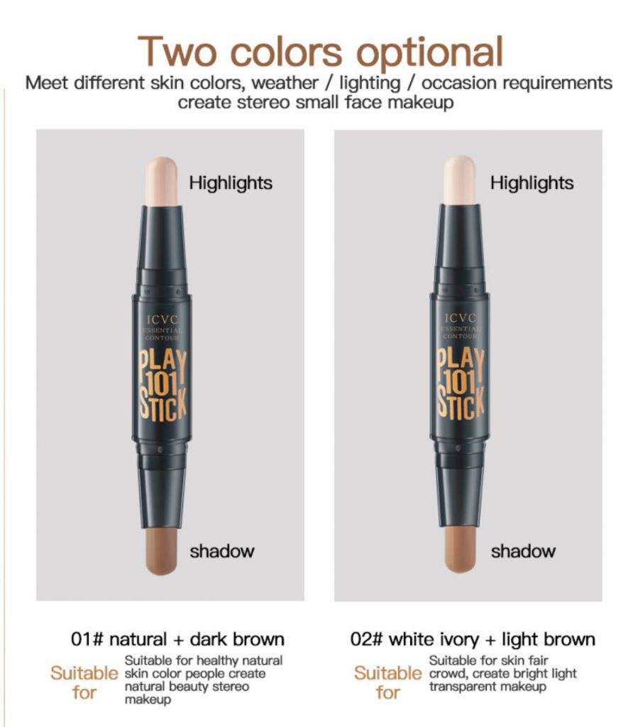 Package Included: 1 * Double Head Highlighter Bronzer stick Specifications: Weight: 18.85g Length: 11cm Specifications: Name: shiny shimmer Benefit: Long-last Style: Double Head Weight: 21g with box Net content: Size:11*1cm Effect: Brighten skin tone and modify facial contours Suitable season:all Shelf life: 3 years Description: 100% Brand new and High quality. Enhances and illuminates the complexion. Gives a multi-dimensional sculpted look. Easy to blend, buildable color. Water-proof and long-lasting. color stay from day to night Enhances and illuminates the complexion Moist your skin, and oil controlled Beautify your face with this Magical Beauty Maker, highlight, embellish, and conceal all through this Almighty Makeup Stick. Notes: Due to the difference between different monitors, the pictures may not reflect the actual color of the item. Compare the detail sizes with yours, please allow 1-3cm error, due to manual measurement. Please leaving a message before you give the bad feedback, if the products have some problems. Thanks for your understandings. How to combined orders When you want to order different items together in my store . Choose what you want , and click "Add to cart" instead of "Buy it now" . Go ahead to next item , click "Add to cart" again. Keep doing this until all the items are in the "Cart" . Click the "Cart" , which on the top right of web , you can make one-time payment for all of the items.