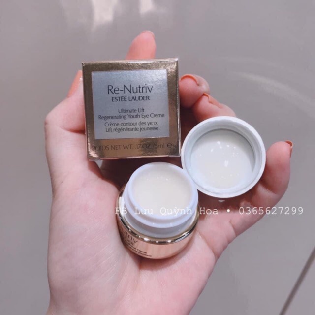 Hot ! Kem mắt re-nutriv bản vàng cao cấp bạc nhất!!! ( fullsize 15ml store bán trên dưới 4 triệu, on web 155$ chưa ship tax) giá nhà em iu thương vô cùng 3xx cho bản 5ml fullbox số lượng có hạn ai lấy nhớ báo e sớm cực kì hiếm khi lấy đc sample dòng vàng này nhé ạ Hàng hiếm lên sóng kem dưỡng trẻ hoá da vùng mắt với công nghệ độc quyền ICONIC WATER – Với công nghệ đã được cấp bằng sáng chế của Estee Lauder, vẻ đẹp và sức mạnh của 2 loài kỳ hoa sẽ được tinh luyện bởi công nghệ Re-Nutriv. Lấy cảm hứng từ cấu trúc và sự phong phú của giọt sương, Estee Lauder tạo ra Re-Nutriv Ionic Water sử dụng các lĩnh vực vật lý electrogravitational và hóa học tiên tiến để truyền tải các khoáng chất quan trọng và tập trung các vi chất dinh dưỡng, để làn da có thể hấp thu dễ dàng và được nuôi dưỡng mạnh mẽ. Hiệu quả: Vùng da xung quanh đôi mắt của bạn sẽ trở nên mềm mại và trẻ hóa do tác dụng của công nghệ Ultimate Lift. Những vết chân chim, nếp nhăn, bọng mắt và quầng thâm cũng giảm rõ rệt. Cách sử dụng: sáng và tối -----------