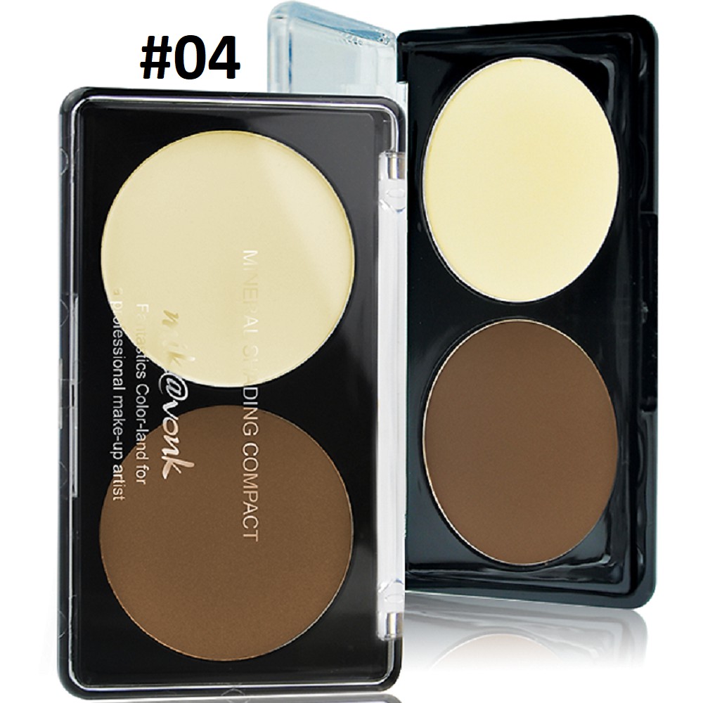 • Phấn Trang Điểm Tạo Khối Hàn Quốc Mik@vonk Mineral Shading Compact gồm màu sáng và tối dùng để tạo điểm nhấn, đồng thời khắc phục những khiếm khuyết trên gương mặt. Hạt phấn mịn, độ bám tốt và chống đổ dầu. • Thành phần: Talc, Mica, Methymethacrylate crosspolymer, bismuth Oxychloride, Dimethicone, Etylhexylmethoxycicinnamate, Diisostearyl Malate, Fragance, Titanium Dioxide, Iron Oxide Red, Iron Oxide Black, Iron Oxide Yellow.. • Khuyến cáo, ngưng sử dụng sản phẩm khi có dấu hiệu dị ứng. Hướng dẫn sử dụng • Những người có sống mũi thấp và mắt thâm quầng, dùng phấn màu sáng che phủ vùng dưới mắt và dọc sống mũi, tạo điểm nhấn cho gương mặt trở nên thanh thoát, hài hòa. • Dùng phấn màu tối đánh dọc 2 bên xương hàm để tạo gương mặt thon gọn. Tông màu lựa chọn • #01 back- while • #03 sable – soft brown • #04