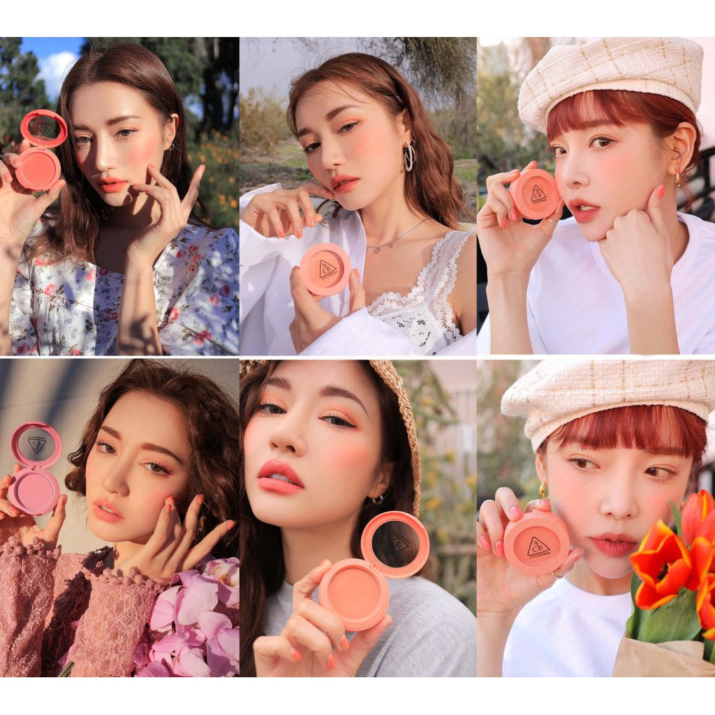 Bộ 5 màu má Face Blush trong 3CE Mood For Blossom Edition có chất phấn siêu mềm mịn hoàn hảo, bám da cực tốt nhưng không hề gây cảm giác nặng nề cho da, không gây bít lỗ chân lông. Khả năng bám màu tốt, lên đến suốt cả ngày, cho bạn gái lớp makeup tươi sáng rạng rỡ tự nhiên nhất có thể. Thiết kế hộp phấn nhỏ gọn đơn giản nhưng không kém phần thanh lịch dễ thương. Khá tiện dụng, bạn có thể dễ dàng mang theo trong túi xách mọi lúc mọi nơi. Chất liệu của vỏ hộp phấn cứng cáp, chắc chắn nên dễ dàng ghi được điểm trong mắt người dùng. 3CE Face Blush có bảng màu gồm 3 tông thiên cam và 2 tông thiên hồng. Các tone màu cực nhẹ nhàng, ngọt ngào, phù hợp với xu hướng trang điểm hiện nay, tùy độ đậm nhạt theo sở thích của mỗi người, phấn má Face Blush sẽ giúp gương mặt trở nên đầy sức sống. #3ce #3cevn #3cevietnam #mahong3ce #3ceblush #mahong #moodblossom