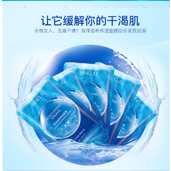 Mặt Nạ Bingju Cấp nước, Dưỡng Ẩm, Trắng Da Dung tích: 25ml Được chiết xuất từ: Hợp chất từ tảo biển tự nhiên, Acid hyaluronic, rau má, hoa cúc Công dụng: Cấp nước và khoá nước cho làn da khô, dầu mệt mỏi Giúp dưỡng ẩm sâu cho da, dưỡng trắng, làm dịu mát da và kiềm dầu Giúp da mềm mại mượt mà như da em bé Đắp mask còn có cảm giác mát lạnh, hơn cả đi Spa các bạn nha!