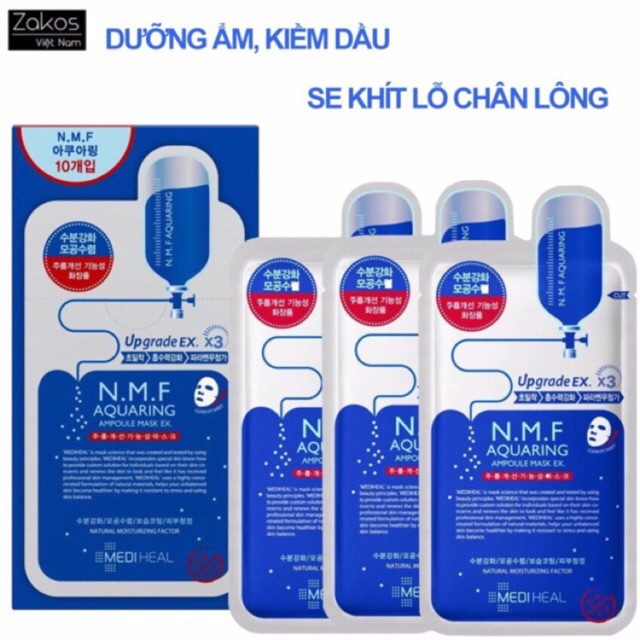 Mặt nạ Mediheal N.M.F Aquaring ampoule mask EX của Hàn Quốc chứa các dưỡng chất thẩm thấu và nuôi dưỡng từ sâu bên trong, làm cho da khỏe mạnh, săn chắc. Bên cạnh đó, mặt nạ còn có tác dụng kiềm dầu, làm se khít lỗ chân lông, bạn sẽ cảm nhận được sự khác biệt rõ rệt khi sử dụng sản phẩm này đều đặn và thường xuyên. Mặt nạ Mediheal N.M.F Aquaring ampoule mask EX của Hàn được chiết xuất từ các thành phần thiên nhiên, hết sức an toàn cho da, phù hợp với mọi loại da, kể cả da nhạy cảm.