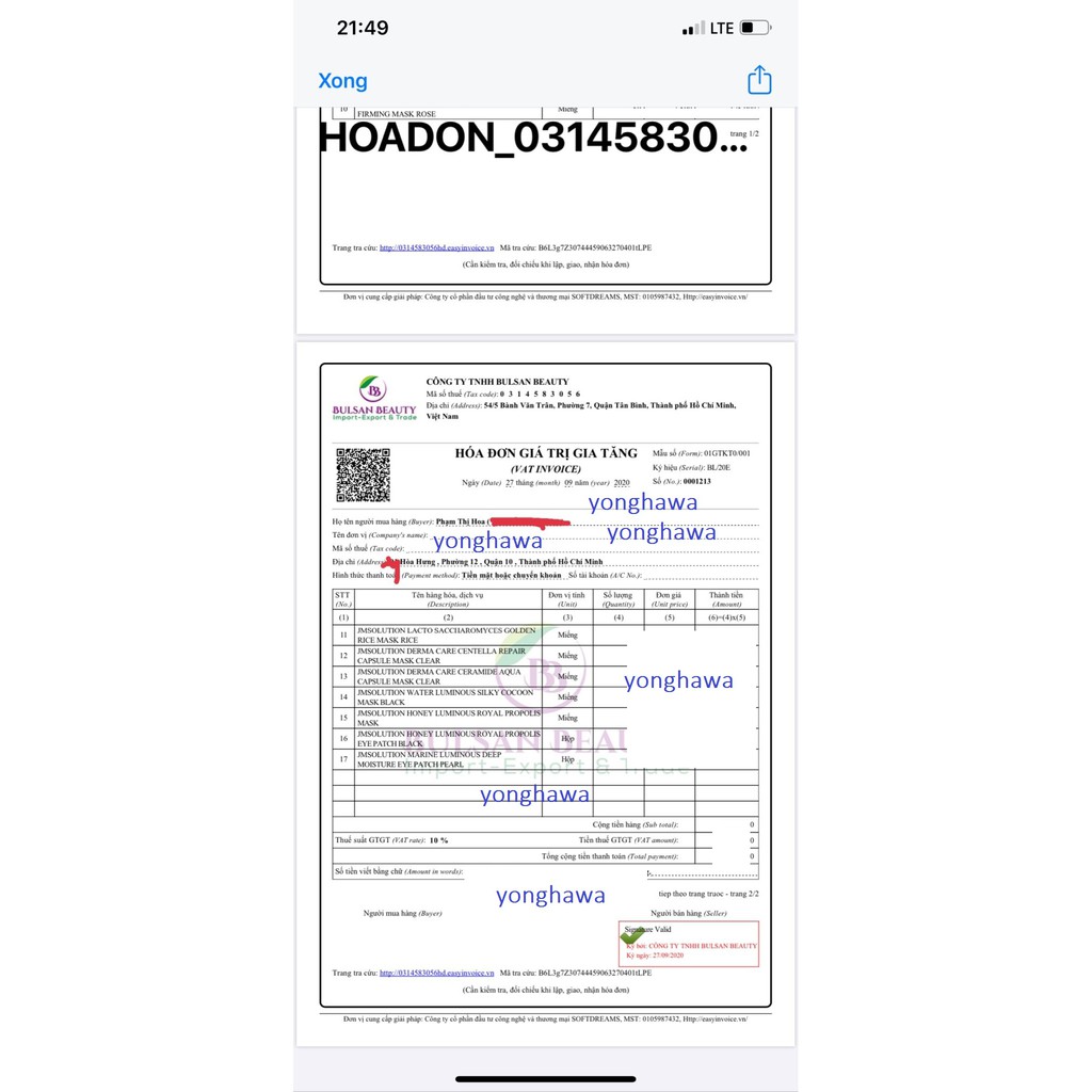 Dung tích: Hộp 10 miếng x30 ml 1. Mặt nạ JM Solution Water Luminous S.O.S Ringer Amino Mask giải tỏa căng thẳng, chống lão hóa. 2.🌟JM Solution Donation Facial Mask Dress : Giữ ẩm lâu dài, cung cấp ẩm và độ bóng cho da 3.☁️ JM Solution Water Luminous Silky Cocoon Mask giàu dưỡng chất, tái tạo cấu trúc cho da, làm trắng da. 4. JM Solution Derma Care Ceramide Aqua Capsule Mask Medi xây dựng một hàng rào nước, giúp da ngậm nước 5.🌷 Mặt Nạ Giấy JM Solution Glow Luminous Flower Firming Mask tăng độ đàn hồi 6.💦 JM Solution Water Luminous S.O.S Ampoule Vita Mask chăm sóc da trắng khỏe 7.🎗 Mặt Nạ Giấy JM Solution Donation Facial Mask Save phục hồi da 8.🥑Mặt Nạ Bơ JM Solution Water Luminous Avocado Nourishing In Oil Mask đem lại vẻ tươi trẻ cho da 9.🐝 Mặt Nạ Sáp Ong Jm Solution Honey Luminous Royal Propolis Mask 30ml giúp nuôi dưỡng và duy trì độ ẩm cho da 10.🌝 Mặt Nạ Căng Bóng Da JM Solution Derma Care Centella Repair Capsule Mask Medi có tác dụng cung cấp độ ẩm, làm dịu vùng da bị tổn thương 11.💧💧💧 Mặt Nạ Dưỡng Ẩm Và Làm Dịu Da JM Solution Water Luminous S.O.S Ringer Mask Mặt nạ phù hợp với mọi loại da, đặc biệt hiệu quả với những bạn có làn da khô, da cháy nắng, xỉn màu 12.🤩Mặt nạ giấy dưỡng da JM Solution Glow Luminous Aurora Mask 30ml giàu dưỡng chất có chức năng kép là làm trắng da 13.🌑 Mặt nạ 3 bước Ngọc trai đen giúp Cấp ẩm, Sáng và săn chắc da JMsolution Marine Luminous Black Pearl Balancing Mask: Mặt nạ giúp loại bỏ chất thải và bụi bẩn khỏi lỗ chân lông 14.🌧 JM Solution Water Luminous S.O.S Ampoule Hyaluronic Mask 30ml: Dưỡng trắng , dưỡng ẩm , mịn màng 15.🌾 Mặt nạ gạo JM solution chiết xuất từ gạo giúp thu nhỏ,se khít lỗ chân lông cùng khả năng cấp nước cao dưỡng sáng da 16.🔮 Mặt nạ giấy JM Solution Marine Luminous Pearl Deep Moisture Mask có chiết xuất từ bột ngọc trai và nguồn nước dưới biển sâu mang đến năng lượng tích cực cho làn da, đồng thời làm sáng và nuôi dưỡng da từ bên trong. Giúp da căng mịn, giảm nếp nhăn và ngăn ngừa các dấu hiệu lão hóa. Kết cấu của mặt nạ cellulose tự nhiên thấm đẫm dưỡng chất, cực kì mỏng dính giúp ôm sát vào da mặt và cung cấp dưỡng chất tốt hơn cho da. 17. Mặt nạ sứa (JELLYFISH) với tinh chất chứa chiết xuất sứa cung cấp sức sống và độ #ẩm và #collagen 18. Mặt nạ (PINK SNAIL) làm #sáng với tinh chất ốc sên màu hồng cung cấp sức sống để làm cho làn da của bạn sáng và đều màu làm mờ các vết thâm #sạm, #da_trắng & #mịn hơn 19. Mặt nạ (GOLDEN CAVIAR) trứng cá muối vàng giúp #chốnglãohóa, tạo hàng rào bảo vệ cho luôn mọng nước, nâng cơ & trẻ hoá da. 20.Mặt nạ (BIRDS’ NEST) tổ yến cung cấp hydrat hóa sâu vào da của bạn cung cấp độ #ẩm và làm thu nhỏ lỗ chân lông #jmsolution #matnagiay #yonghawa #matnagiayjmsolution
