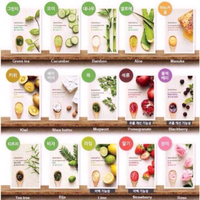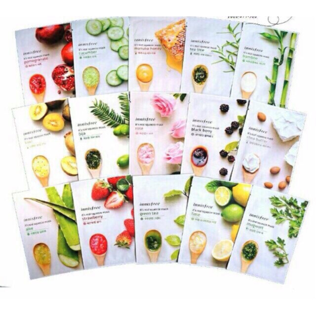 *Mặt Nạ Giấy Innisfree Its real squeeze mask GIỚI THIỆU SẢN PHẨM: -Một làn da đẹp không chỉ là làn da trắng trẻo, láng mịn được hỗ trợ bởi các loại kem dưỡng da. Da đẹp phải là da khỏe, săn chắc từ bên trong. Để làm được điều đó thực ra không hề khó như chị em vẫn tưởng. Không cần tốn nhiều thời gian, tiền bạc hay công sức, bạn có thể thoải mái làm đẹp tại nhà , với bộ mặt nạ dưỡng da chống lão hóa Innisfree Its real squeeze mask mang đến cho bạn làn da trắng sáng, tự nhiên. *THÔNG TIN CHI TIẾT SẢN PHẨM: -Thành phần chính hoàn toàn tự nhiên, không sử dụng thành phần nhân tạo, độ ẩm cao, an toàn cho da, cung cấp đổ ẩm cho da khỏe mạnh, tươi trẻ. -Thiết kế mặt nạ thông minh giúp đổ ẩm không bị mất, bay hơi trong quá trình đắp. Lớp dưỡng chất dày đến 30ul nhiều dưỡng hơn và được bảo vệ bởi lớp giấy lụa mỏng nhẹ. *Mỗi gói gồm 1 mặt nạ giấy 20ml: - Loại Trà xanh: thành phần chính từ lá trà xanh được chọn lọc tốt nhất giúp dưỡng ẩm sâu bên trong da, mang lại làn da tươi mới, khỏe mạnh. Tăng cường 113% độ ẩm cho da sau khi sử dụng. - Loại Mâm Xôi Đen: ( black berry )với thành phần chính là từ quả mâm xôi đen giàu dưỡng chất và vitamin nuôi dưỡng da hồng hào, khỏe mạnh. Tăng cường 125% độ ẩm cho da sau khi sử dụng. - Loại Hoa hồng: với thành phần chính là từ tinh dầu cánh hoa hồng giúp da căng bóng, mềm mịn. Tăng cường 113% độ ẩm cho da sau khi sử dụng. - Loại Mật Ong: với thành phần chính từ mật ong nguyên chất là nguồn giàu dưỡng chất, nuôi dưỡng làn mềm mịn, giảm thiểu khô da, thô ráp. Tăng cường 119% độ ẩm cho da sau khi sử dụng - Loại Dâu tây: với thành phần chính là từ quả dâu tây thiên nhiên giúp làm mềm mướt da và sáng da. Tăng cường 119% độ ẩm cho da sau khi sử dụng. - Loại Lô hội: với thành phần chính là từ lô hội thiên nhiên giúp cung cấp độ ẩm tuyệt đối và làm mềm, mướt da. Tăng cường 119% độ ẩm cho da sau khi sử dụng. - Loại Tre: chiết xuất từ tinh chất tre thích hợp cho da khô và da cực khô. Giúp cung cấp dưỡng chất và độ ẩm cho da - Loại Ngải Cứu: với thành phần chính từ cây ngải cứu giàu năng lượng giúp làm sạch sâu và cải thiện làn da, mang lại vẻ khỏe mạnh, rạng rỡ . Tăng cường 125% độ ẩm cho da sau khi sử dụng. - Loại Bơ Hạt Mỡ: với thành phần chính từ bơ hạt mỡ cung cấp độ ẩm cao từ sâu bên trong da, giúp da mềm mịn. Tăng cường 125% độ ẩm cho da sau khi sử dụng. - Loại Dưa Leo: với thành phần chính là từ quả dưa leo mọng nước, cấp nước và tăng cường độ ẩm, giảm khô ráp. Tăng cường 119% độ ẩm cho da sau khi sử dụng. - Loại Lựu đỏ: với thành phần chính là từ quả lựu đỏ thiên nhiên giúp da săn chắc, tăng độ đàn hồi, căng khỏe cho da. Tăng cường 119% độ ẩm cho da sau khi sử dụng. ####Shop có các mùi Dâu Tây , Black Berry, lựu, mật ong, hoa hồng, chanh, aloe, Green Tea, Tea tree,bamboo, Ngãi cứu, nha đam, dưa leo, chanh dây #innisfree #mặtna #hottrend #giatotnhatshopee #giasi