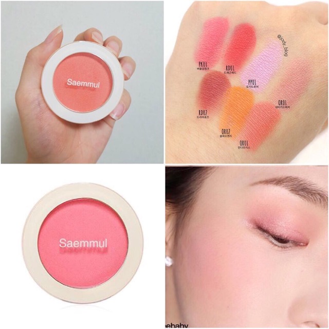 🇻🇳 PHẤN MÁ THE SAEM SAEMMUL SINGLE BLUSHER Sẵn màu #RD01 #OR01 #RD02 #PK01 Thương hiệu The Saem Xuất xứ Hàn Quốc 🇻🇳 Phấn má với màu sắc nhẹ nhàng, tự nhiên giúp khuôn mặt trở nên hồng hào, quyến rũ. 🇻🇳 Thông tin sản phẩm - Kết cấu phấn mịn, bám chặt vào da của bạn, tạo cho bạn một lớp má hồng nhẹ nhàng. - Màu sắc tươi tắn, lên màu đẹp giúp đôi má ửng hồng, nổi bật gương mặt. 🇻🇳 Cách sử dụng - Sử dụng cọ, hoặc dùng ngón tay lấy phấn và đánh lên vùng gò má. #thesaem #saemmul