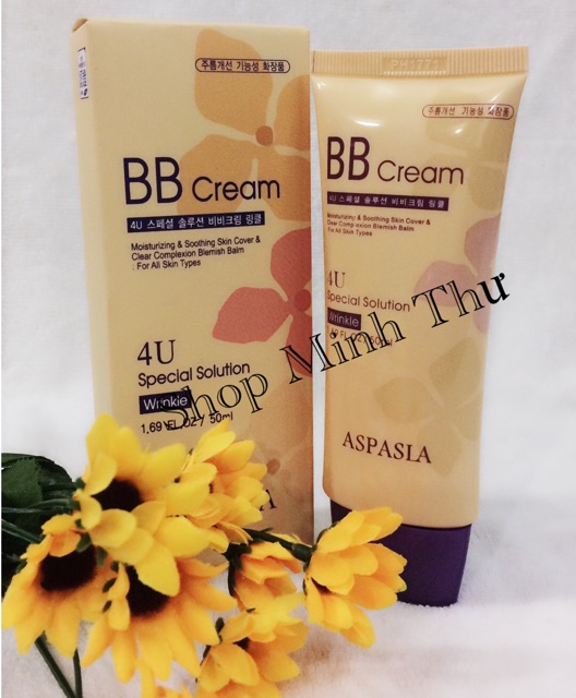 ‼️Kem nền là bước quan trọng trong khâu Make-Up, để đem đến cho bạn một gương mặt hoàn hảo. 🌈🌈Kem nền ASPASIA BB Cream 4U Solution Wrinkle. ✔️5 chức năng trong 1: chống nhăn, săn da, trắng da, bảo vệ da, kem nền. ✔️Nhiều dưỡng chất nuôi dưỡng da, tăng cường độ ẩm cho da. ✔️Che mờ đi khuyết điểm, tàn nhang, vết sạm da, thâm da. ✅Xuất xứ: Hàn Quốc chính hãng. 💧💧50ml. 💰💰Giá bán: 125.000₫ 🎋Với chiết xuất từ thiên nhiên, giàu vitamin và kháng chất cần thiết cho da, Aspasia đem đến sự hài lòng cho phái đẹp khi giúp dưỡng ẩm, chống lão hoá và cải thiện làn da tươi trẻ, mịn màng. 👍👍Bạn hãy cảm nhận sự khác biệt khi sử dụng mỹ phẩm thương hiệu Aspasia. 🍃Là sản phẩm đa công dụng, đặc biệt chống nhăn da, vừa dưỡng da hiệu quả và mang lại lớp nền trang điểm tươi sáng. 💫💫Thành phần: sản phẩm có thành phần lành tính từ thiên nhiên, an toàn cho da, hạn chế gây kích ứng, bảo vệ và nuôi dưỡng da sáng khỏe. 💖Thích hợp với mọi loại da. ☘️☘️HDSD: Sau khi rửa sạch mặt, bạn lấy một lượng kem Aspasia BB Cream vừa đủ chấm lên mặt và cổ. Sử dụng mút hoặc cọ trang điểm chuyên dụng để đạt hiệu quả cao nhất. ---------------- - Fb:https://www.facebook.com/MinhThu.ShopMyPham/ - Ghé thăm trang Shopee: https://shopee.vn/minhthushop328 - Địa chỉ duy nhất: 328 Nguyễn Văn Tăng P.Long Thạnh Mỹ Q9 Tp.HCM - Hotline: 0908618319