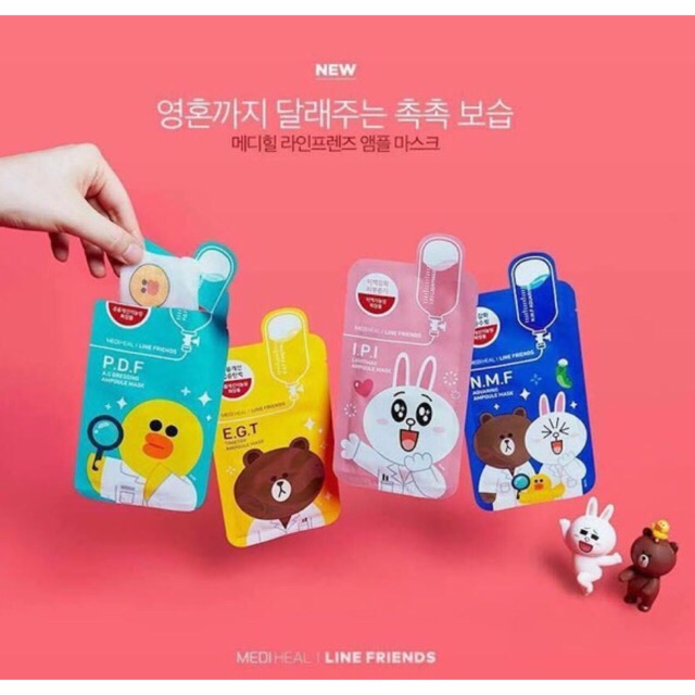 Nhắc đến mặt nạ giấy không thể bỏ qua cái tên Mediheal. Đây là một hãng mỹ phẩm Hàn Quốc khá nổi tiếng ở Việt Nam với sản phẩm N.M.F Aquaring Ampoule. Gần đây hãng còn cho ra mắt khá nhiều dòng mặt nạ mới cực kì độc đáo. Nếu các bạn đã quá quen với những sticker đáng yêu như gấu Brown, thỏ cony,… từ ứng dụng Line rồi thì chắc sẽ vỡ òa, vì những hình ảnh đáng yêu này sẽ xuất hiện trên mặt nạ của bạn với Mặt nạ giấy Mediheal Line Friends 4 đấy! 🍓 hàng bao test mã 🍓🍓 FB: THUY TONG Zalo + sđt : 0909964458