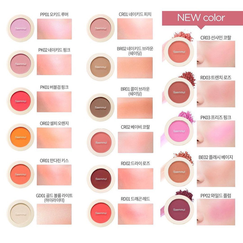 Phấn Má Hồng The Saem Saemmul Single Blusher Xuất xứ: Hàn Quốc Phấn má The Saem Saemmul Single Blusher là sản phẩm tạo điểm nhấn cho gương mặt thêm tươi tắn và rạng rỡ với những tone màu phấn nổi bật. Sản phẩm được thiết kế với các hạt bột mịn giữ lâu trên da của bạn suốt cả ngày dài, bột kiểm soát bã nhờn và mồ hôi trên da hiệu quả.Chất bột được tạo từ các khoáng chất an toàn với làn da của bạn. Phấn má The Saem Saemmul Single Blusher với đa dạng các màu giúp bạn có nhiều sự lựa chọn cho phong cách trang điểm của riêng mình, màu sắc xinh xắn tạo nên một lớp trang điểm hoàn hảo. Phấn má hồng The Saem Single Blusher sở hữu những tone màu tự nhiên, kết cấu mỏng nhẹ có chứa nhũ giúp cho khuôn mặt trở nên hồng hào quyến rũ😗 Phấn má The Saem Saemmul Single Blusher là sản phẩm tạo điểm nhấn cho gương mặt thêm tươi tắn và rạng rỡ với những tone màu phấn nổi bật. Sản phẩm được thiết kế với các hạt bột mịn giữ lâu trên da của bạn suốt cả ngày dài, bột kiểm soát bã nhờn và mồ hôi trên da hiệu quả. Kết cấu hạt phấn với chất kết dính hoàn hảo với 7 loại đá quý và khoáng chất, cho phép phấn bám chặt lên da giúp bạn tự tin suốt ngày dài năng động .