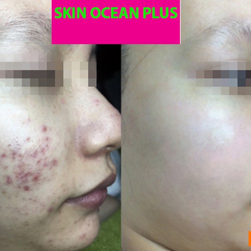Serum tri mụn hiệu quả 100% các vấn đề liên quan đến mụn và da mụn. Tri sạch tất cả các loại mụn cứng đầu mà các dòng serum tri mụn khác không làm được hoặc các dòng sản phẩm tri mụn khác không làm được Serum tri mụn SKIN OCEAN PLUS được chiết xuất hoàn toàn 100% từ thiên nhiên an toàn và thân thiện cho da mặt. Với công dụng tri mụn vượt trội đồng thời là sản phẩm serum tri mụn tốt nhất và phù hợp cho mọi loại da Serum tri mụn cao cấp Skin Ocean Plus có tác dụng mạnh gấp nhiều lần các loại sản phẩm tri mụn thông thường, có thể thẩm thấu vào bên trong nhân mụn, giúp làm khô và đẩy tế bào mụn ra khỏi bề mặt da. Đánh bật được các loại mụn cứng đầu như mụn bọc, mụn ẩn, mụn đầu đen, mụn cám, mụn trứng cá,… Làm mờ và xóa đi các vết thâm do mụn để lại trên da, làm đều màu da hơn. Hỗ trợ làm se khít lỗ chân lông. Làm khô nhân mụn một cách nhanh chóng, giúp quá trình làm khô mụn diễn ra nhanh hơn. Làm dịu nhẹ các tổn thương trên da khi da bị dị ứng, mẩm ngứa, mụn đỏ. Tôi hứa serum tri mụn Skin Ocean Plus sẽ làm thay đổi cuộc đời bạn mãi mãi. Tác dụng chính của serum tri mụn Skin Ocean Plus :Sản phẩm hiệu quả là nhờ được bào chế từ Nhân sâm, sâm đen, trà xanh nhật bản, safron, cỏ lạc tiên và một số thảo dược quý hiếm khác, Serum tri mụn Skin Ocean Plus giúp xoá sạch mụn với cơ chế thải độc da và tái tạo da mới qua 4 quá trình sau: Quá trình 1: Diệt khuẩn gây mụn cho da: Sau khi thoa serum tri mụn ,serum tri mụn sẽ kích hoạt diệt khuẩn trên bề mặt da và trong ổ mụn, vì thế giai đoạn đầu bạn sẽ thấy các nốt mụn cũ khô lại, xẹp dần, da láng mịn. Quá trình 2: Thải độc cho da: Sau khoảng 2 tuần, các hoạt chất từ Nhân sâm,trà xanh và saffron,… sẽ tiến hành đẩy: nhân mụn, tế bào chết, mỹ phẩm,… tích tụ ra ngoài. Lúc này, trên bề mặt sẽ xuất hiện nhiều mụn nhưng bên dưới da đang được làm sạch tối đa. Quá trình 3: Tái tạo cho da: Lớp da cũ bị bệnh, nhiều vi khuẩn sẽ dần thay bằng lớp da mới sạch vi khuẩn, sạch mụn, khỏe mạnh hơn. Quá trình 4: Cân bằng lại tuyến nhờn cho da Giúp da sạch, thông thoáng và ngăn ngừa mụn quay trở lại. Da láng mịn, sạch mụn nhanh chóng chỉ trong thời gian sử dụng serum tri mụn. CÁCH DÙNG CHUNG Bước 1: rửa mặt và tẩy trang để làm sạch và thông thoáng lỗ chân lông giúp da hấp thụ serum tri mụn một cách tốt nhất. Bước 2: lấy 1 lượng serum tri mụn vừa đủ thoa lên da và nhẹ nhàng vỗ đều để serum tri mụn thẩm thấu hoàn toàn vào da. Dùng mỗi tối trước khi đi ngủ, có thể để serum tri mụn trên da qua đêm và rửa sạch mặt vào sáng hôm sau để thấy sự khác biệt sau 1 đêm. Để sản phẩm phát huy tác dụng vui lòng thực hiện theo các bước hướng dẫn bên trên nhé.