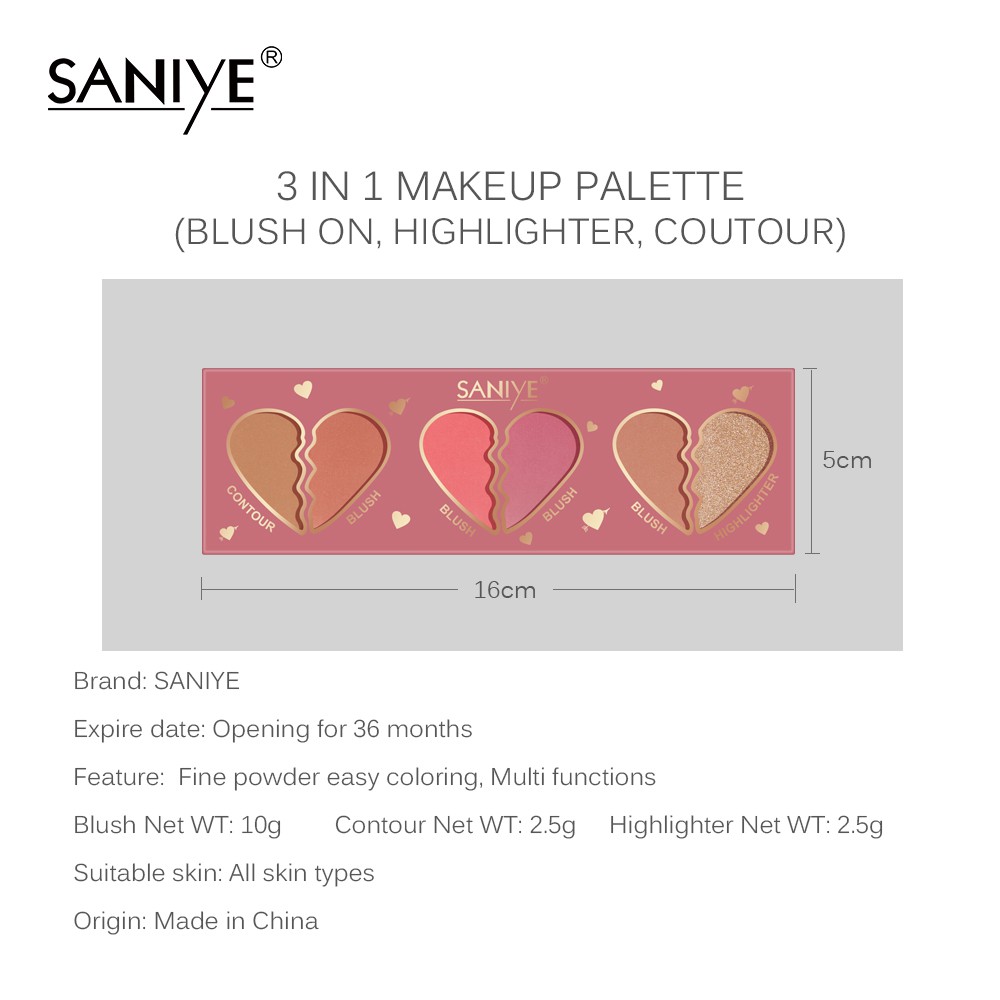Sản phẩm Phấn Má Hồng Saniye 3 Trong 1 Họa Tiết Trái Tim + 4 Phấn Bắt Sáng E0332 hiện đang được bán tại Shopee.