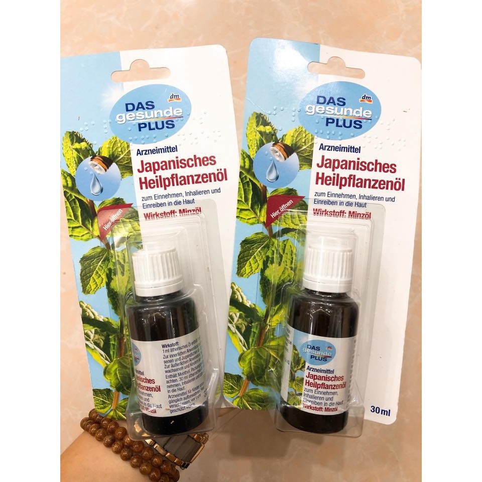Hàng Đức nội địa 🍃TINH DẦU BẠC HÀ DAS GESUNDE ☘️Dầu thảo dược Japanisches Heilpflanzenöl là loại dầu thần kì xuất xứ từ Đức. Chỉ là tình cờ khi biết đến dầu thảo dược Japanisches vì có chị khách ở Việt Nam nhờ mua 10 hộp 1 lúc để dùng dần và làm quà quý đem tặng vì nhà có người già và trẻ em mà giá cả cực kì phải chăng. Ai ai cũng dùng được hết, nhưng không thích hợp cho trẻ nhỏ dưới 2 tuổi. 🌾Từ xưa, bạc hà đã được con người chúng ta phát hiện và ứng dụng rất thành công vào lĩnh vực chăm sóc sức khoẻ. Bởi đây là loại cây có tác dụng rất lớn như: cải thiện hệ tiêu hoá, hỗ trợ điều trị những bệnh lý liên quan đến đường ruột, điều trị những bệnh cảm sốt, ho, sổ mũi…Không những loại cây này có tác dụng thần kỳ, mà tinh dầu thảo dược Japanisches Heilpflanzenöl được chiết xuất nguyên chất từ nó càng có hiệu quả gấp nhiều lần. 🌼Công dụng dầu thảo dược Japanisches Heilpflanzenöls: – Trị đầy hơi, rối loạn chức năng, tiêu hóa và đường mật. – Thông mũi, chữa các bệnh về đường hô hấp như viêm mũi dị ứng, viêm xoan… – Dầu thảo dược Japanishes Heilpflanzenöl chiết xuất từ bạc hà có tính sát khuẩn khá mạnh nên dùng để chống cảm lạnh. – Làm dịu các triệu chứng như đau đầu, căng thẳng, mệt mỏi. – Khi có các vấn đề nhức mỏi tay chân, cơ thể uể oải, các cơn đau về khớp của người lớn tuổi 🍯Cách sử dụng - Về trường hợp viêm xoang, viêm mũi và cảm lạnh: nhỏ 2-3 giọt vào thau nước nóng nhỏ xông mũi, ngày làm 2 lần, mỗi lần 10 phút. Khi xổ mũi hoặc dị ứng mũi thì xông ngay sẽ giảm đáng kể. - Dùng để ngâm chân, hoặc tắm cho 1 vài giọt vào nước nóng khi thời tiết trở lạnh. - Xông hơi, giải cảm lúc bị sốt hay cảm cúm - Dùng như dầu gió bôi lên mũi nếu bị vấn đề hô hấp hay cơ thể để giữ ấm, mùi thơm dễ chịu. 🌟ĐẶC Biệt: có thể chống đau bụng, bôi khi cơ thể đau nhức hay massage. Pha hỗn hợp dầu olive 75ml với 5 giọt tinh dầu thảo dược Japanishes thành dầu massage tuyệt vời để thư giãn, lưu thông máu huyết. - Pha với nước để uống sau khi bị say rượu đối với người lớn. - Khử mùi chân hoặc nách với 1 vài giọt nước ấm. - Có thể đốt với đèn dầu để giảm stress, mệt mỏi, tạo cảm giác thư giãn sau 1 ngày làm việc. NGUỒN HÀNG ĐỨC - SỈ, MUA HỘ - CALL: 0342080967 #120k