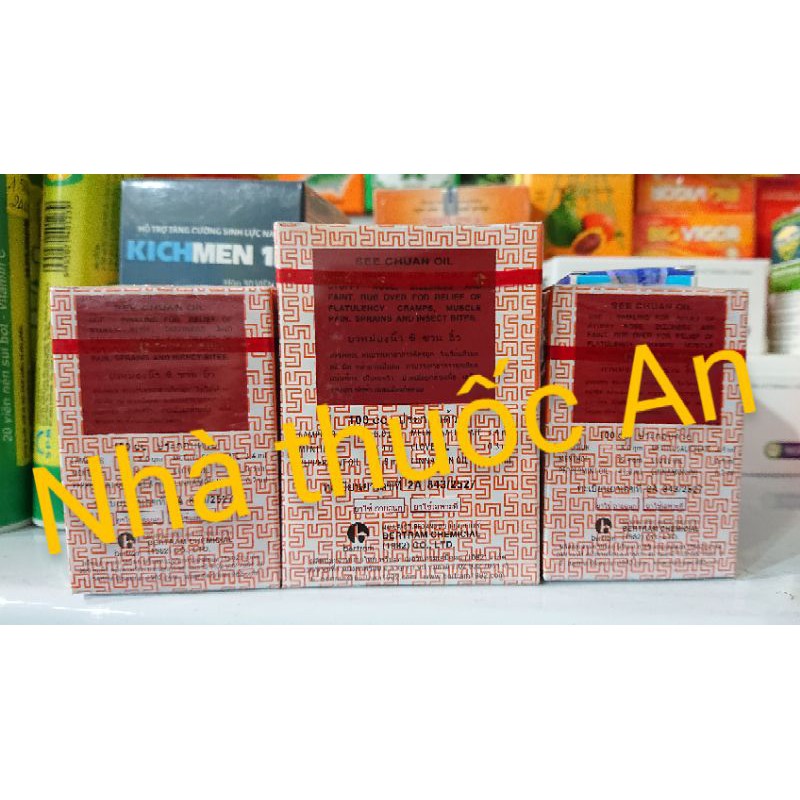 Dầu nước trắng See Chuan Oil là một thương hiệu quen thuộc, gần gũi với tất cả mọi người, mọi lứa tuổi, mùi thơm độc đáo từ tinh dầu giúp làm dịu và giảm ngay những cơn đau đầu, cảm lạnh. Ở Thái Lan, bước chân vào bất cứ hiệu thuốc nào, dầu gió See Chuan Oil luôn được bày bán ở vị trí trung tâm và là sản phẩm dầu gió bán chạy bậc nhất ở Thái Lan. Hướng dẫn sử dụng: Lấy một lượng dầu See Chuan Oil vừa đủ vào ngón tay hoặc bàn tay của bạn, massage theo hình tròn, See Chuan Oil nhanh chóng hấp thụ và giảm các cơn đau tức thì. – Lưu ý: Chỉ sử dụng ngoài da, tránh tiếp xúc với mắt và các vết thương hở. Để xa tầm tay trẻ em. Bảo quản nơi thoáng mát