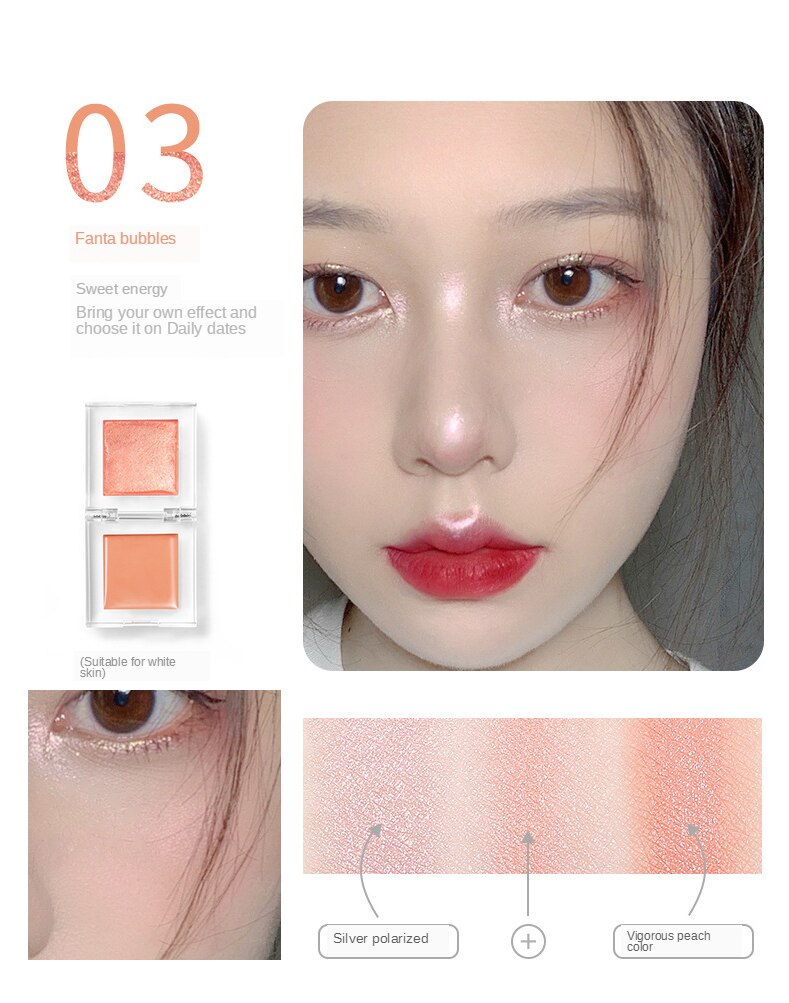 The best blush is here! Two colors match, blush + highlight. Brand: Bird Chen Item No.: JA201 Color: two-color Model: Little ice cube highlight blush Specifications: normal specifications Shelf life: 36 months Have licensable own brand: Yes Skin Type: General Color: 01#Glacier Diamond, 02#orange soda, 03#Fanta Bubble, 04#Time goes by, 05#A Midsummer Night's Dream Special purpose cosmetics: No Main sales areas: Africa, Europe, South America, Southeast Asia, North America, Northeast Asia, Middle East Category: blush, rouge