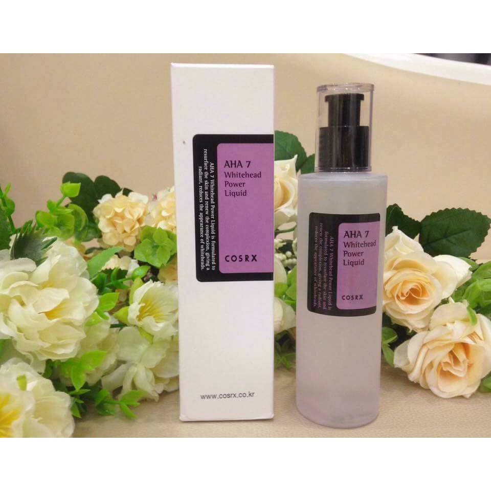 ‼️[Cosrx] [ Sáng da, giảm nhăn]‼️ 💯Tẩy Da Chết Hóa Học #Cosrx AHA 7 Whitehead Power Liquid 💰Giá #270k/100ml Bạn có biết tình trạng mụn ẩn, mụn đầu trắng trên da là do các bụi bẩn, tế bào chết tích tụ lâu ngày, gây tắc lỗ chân lông. AHA sẽ giúp làm yếu các gắn kết giữa tế bào chết để chúng dễ dàng rụng đi hơn. Vì thế, đây là sản phẩm tốt nhất cho các bạn trong quá trình điều trị mụn ẩn, mụn cám, mụn đầu trắng. - Các loại da thích hợp nhất để sử dụng AHA gồm: + Da nhiều mụn ẩn, mụn cám, mụn đầu trắng nhỏ. + Da sần sùi, khô, nhăn nheo, da lão hoá do mặt trời và tuổi già. + Da bị nám và tàn nhang. + Da không đều màu, da có sẹo hoặc thô ráp. - Ngoài ra, do đặc tính AHA tác dụng chủ yếu trên bề mặt da nên sẽ giúp làn da mềm mại hơn, giảm thiểu sự tồn tại của các nếp nhăn. AHA giúp da giữ nước tốt hơn, từ đó làm da trẻ và khoẻ hơn. - Sản phẩm bao gồm 75% tinh chất nước táo có chứa AHA tự nhiên (Alpha-hydroxy Acid) và Glycolic Acid, chứa các vitamin và Hyaluronic Acid (hoạt chất siêu cấp nước) giúp dưỡng da mềm mượt, mịn màng và sáng khỏe. HDSD: - Sử dụng sau bước làm sạch và nước hoa hồng (skin/toner). - Sau khi thoa AHA lên da, bạn đợi 20 phút sau mới sử dụng tiếp các bước dưỡng (để AHA hoạt động trên da). - Liều lượng sử dụng: + Tuần đầu tiên: sử dụng 2 lần/tuần, cách ngày + Tuần thứ 2,3: sử dụng 3 lần/tuần, cách ngày Khi da thấy quen với sản phẩm, bạn có thể sử dụng hằng ngày.