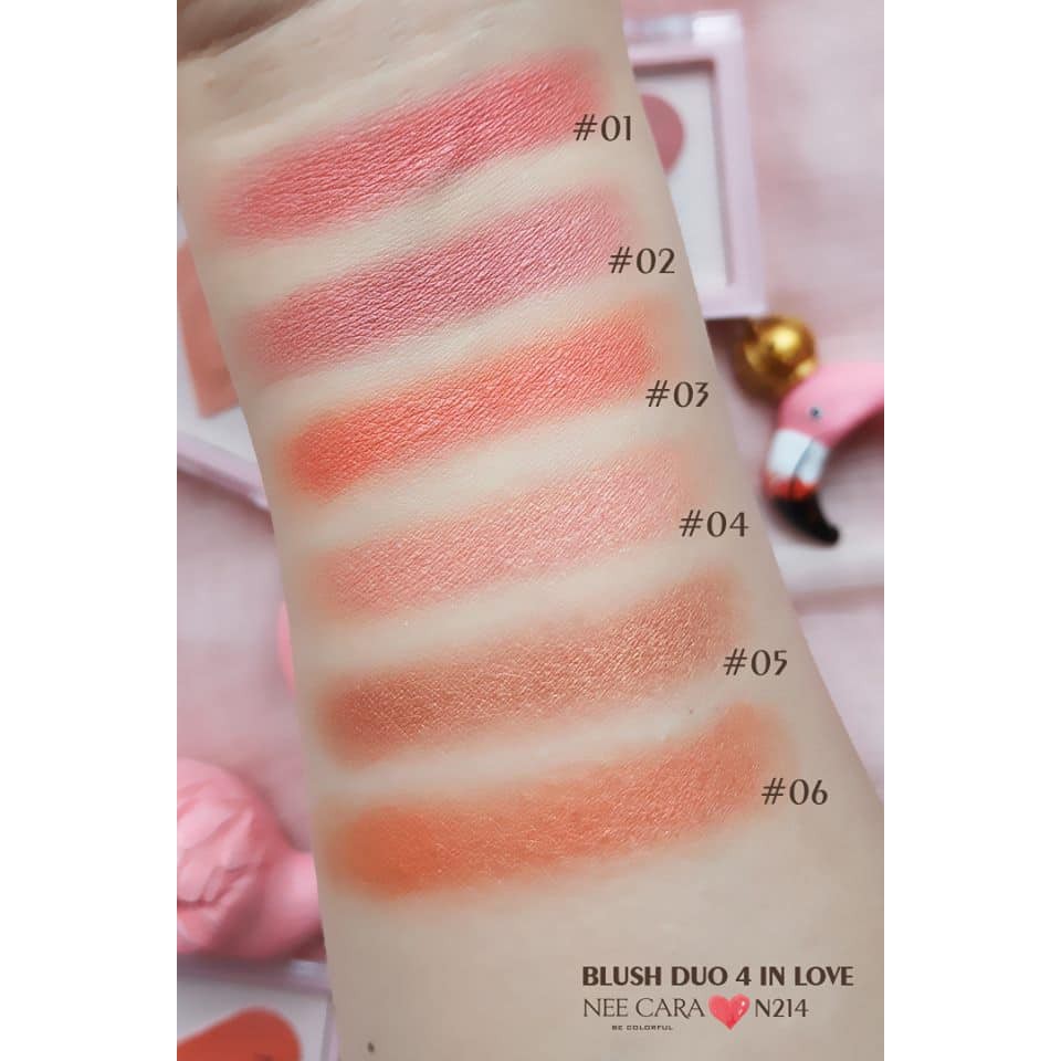 Phấn Má Tim Nee Cara Blush Duo 4 In Love Flamingo Các nàng nhìn em này đủ rụng tim chưa ạ 😍 Phấn được thiết kế hình trái tim nhỏ gọn có thể mang đi mọi lúc mọi nơi. Chất phấn siêu mịn, chứa các hạt nhũ nhỏ giúp các cô gái có gò má ửng hồng xinh xinh, bắt sáng tốt hơn 😜 Shop có sẵn các màu: #01 Hồng baby #02 Hồng đất #03 Cam đào #05 Hồng nâu #06 Cam đất