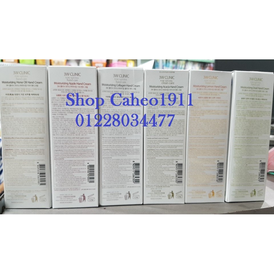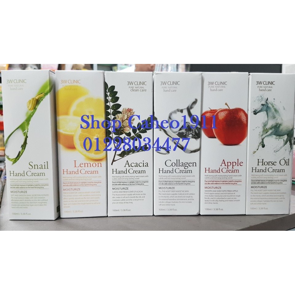 Kem dưỡng da tay 3w clinic Xuất xứ : Hàn quốc ---- ✔️ Mô tả - Chiết xuất từ Ốc Sên, nha đam, olive, lemon có chứa các thành phần cần thiết tương tự như : thành phần của da, khoáng chất thiên nhiên, chiết xuất thảo dược thiên nhiên và công thức thấm sâu giúp dưỡng ẩm và cung cấp độ đàn hồi cho da, làm da trắng sáng, giảm sắc tố làm sạm da và các vết nhăn trên da, bảo vệ làn da của bàn tay bạn từ các tác hại của môi trường bên ngoài. Cho bạn làn da khỏe mạnh, mềm mại và trắng sáng. ✔️ Cách sử dụng : rửa sạch tay, thoa một lượng kem vừa đủ và mát xa nhẹ nhàng để da hấp thụ kem một cách tốt nhất. Các bạn muốn lấy loại nào thì note mình nhé. CHƯƠNG TRÌNH TÍCH ĐIỂM : khi bạn có 10 đánh giá sẽ được giảm giá 10% cho lần mua thứ 11 ( tối đa 50k) vui lòng liên hệ shop nếu có thắc mắc. #caheo1911 #www.facebook.com/Shop-Cá-Heo-222834194833528/ #259PhanAnhpBinhTriDongqBinhTanTpHCMdt01228034477Huong