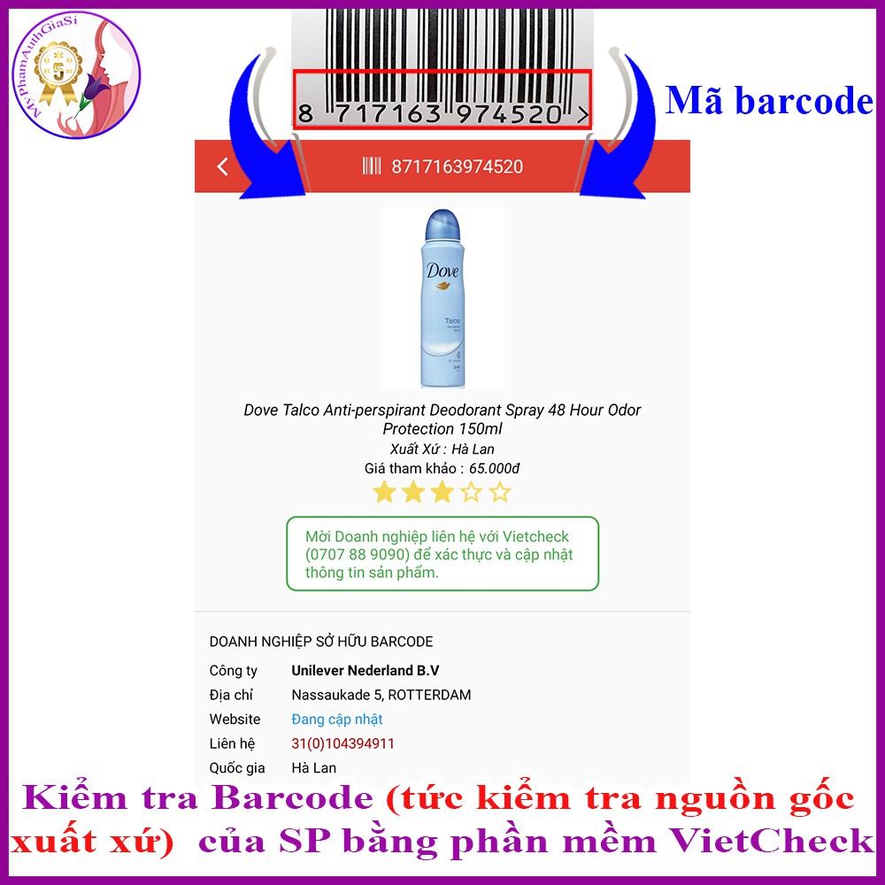 XỊT KHỬ MÙI DOVE 150ML CHÂU ÂU – HÀ LAN Dung tích: 150ml Xuất xứ: Hà Lan Thương Hiệu: Dove XỊT KHỬ MÙI DOVE 150ML CHÂU ÂU – HÀ LAN Thành Phần Công Dụng : Xịt khử mùi Dove 150ml với hương thơm ngọt ngào của các loại hoa hòa quyện cùng mùi hương quyến rũ của xạ hương, gỗ và vani tạo ra mùi thơm tổng hợp trong sáng, thanh nhã và nữ tính. Hương thơm giữ được lâu trên cơ thể, giúp bạn tự tin thoải mái hơn. Sản phẩm xịt khử mùi dove mỹ đã được kiểm nghiệm là khử mùi hiệu quả và an toàn cho vùng da nhạy cảm, không gây kích ứng, khô da, hay nổi mụn, và đảm bảo an toàn cho sức khỏe người dùng. THÀNH PHẦN: Aluminum Chlorohydrate (20.2%), Inactive Butane, Hydrofluorocarbon 152A, Cyclopentasiloxane, Isobutane, Disteardimonium Hectorite, Ppg-14 Butyl Ether, Helianthus Annus Seed Oil, C12-15 Alkyl Benzoate, Fragrance, Dimethiconol, Octyldodecanol, Propane, Bht, Propylene Carbonate, Tocopheryl Acetate. CÔNG DỤNG: Nhờ công thức đột phá từ DOVE giúp vùng da dưới cánh tay của bạn luôn khô thoáng. Bên cạnh đó, mùi hương quyến rũ chiết xuất từ quả lựu chắc chắn sẽ làm phái đẹp hài lòng. Công thức tối ưu đã được kiểm nghiệm giúp da luôn khô thoáng, khử mùi mồ hôi hiệu quả để bạn luôn tự tin khi vận động suốt cả ngày. Với 1/4 hàm lượng sữa dưỡng ẩm và bổ sung vitamin E, F, xịt khử mùi Dove giúp phục hồi và nuôi dưỡng tế bào da bị sậm màu, đồng thời cung cấp độ ẩm cần thiết cho vùng da dưới cánh tay luôn mềm mịn. Hướng Dẫn Sử Dụng: Lắc đều trước khi dùng, xịt cách vùng da 15cm. Lưu ý tránh vùng da bị trầy xước, vết thương hở Không xịt vào mắt Xịt khử mùi Dove dạng áp suất nên tránh ánh nắng trực tiếp, tránh nhiệt độ cao, không đốt hay xuyên thủng chai khi đã sử dụng hết. -------------------------------------------- #xitkhumuidovenu #xitkhumuidove #xitkhumui #dove#xitthom# dovenu#xitkhumui150ml 2