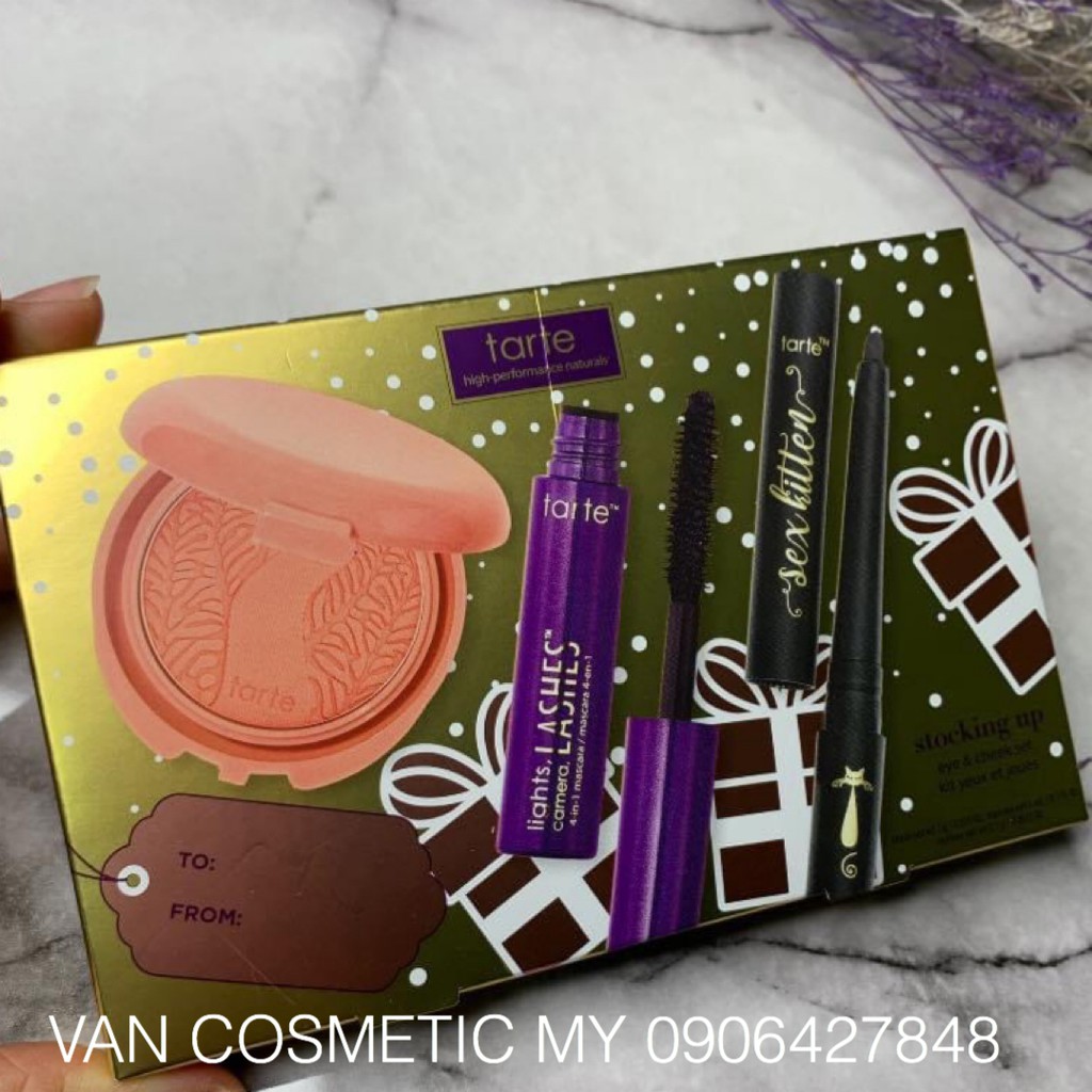 E về mấy set TARTE siu xinh nà Còn mấy set nà GIA HOT : 390K-1 SET SHOPEE ĐANG SALE NH LẮM MẤY CHẾ: LINKS SHOPEE : https://shopee.vn/shop/4264079/search?page=0&sortBy=ctime VAN COSMETIC MY CALL,SMS,VIBER,ZALO,IB :0906427848 ADD 1: 14C/2 NGUYỄN DUY -P9-Q8-SÀI GÒN ADD ; 31A TRẦN NHẬT DUẬT-NHA TRANG 1 bé ™ 4-in-1 mascara 3ml 1 kẻ mắt triple black sex kitten gel 0.1g 1 bé má Amazonian clay 12-hour blush in stocking stuffer 1g Nội bé má hồng thui xài nữa năm chưa hết ý