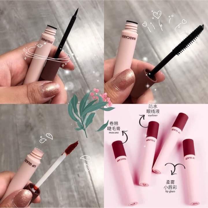 BỘ TRANG DIDEERNM V7 ĐẦY ĐỦXuất xứ: Đài Loan Gồm 7 Sản Phẩm: + Chì kẻ chân mày đầu chì dạng ngang định dạng chân mày, cọ bột giúp tán đều cho nét mày đầy đặn, tự nhiên, mềm mại. + Bút kẻ mắt BIOAQUA cải tiến với đầu cọ sắc nét chỉ 0.01mm, cực kì linh hoạt giúp bạn dễ dàng vẽ mắt từ nét mỏng tự nhiên đến dày cá tính. Công nghệ màng phim độc đáo không lem, không trôi suốt 17 giờ lại hoàn toàn dễ tẩy trang. + Mascara BIOAQUA đầu cọ mới vuốt mi cong vút 100º, chải từng sợi cho mi tơi, dày đều. Dạng gel đặc biệt, nhẹ, mượt giữ mi cong suốt 18h, mi dày gấp 3 lần, không vón cục, không lem, không trôi. + Tạo khói bắt sáng dạng thỏi giúp gương mặt được nhấn sáng trở nên thon gọn, căng mướt sắc sảo nhưng vẫn tự nhiên. + Phấn nước nền với khả năng che phủ hoàn hảo giúp che phủ tốt các khuyết điểm trên da. Duy trì lớp trang điểm trong thời gian dài mà không xảy ra hiện tượng xuống tông khiến khuôn mặt bị tối. Phấn tạo cảm giác da mướt, mượt mà không bị mốc hay khô da. Độ kiềm dầu tốt, phù hợp với cả bạn da dầu hay hỗn hợp dầu đến da thường. Kết cấu kem mềm mỏng mịn giúp tăng khả năng bám trên da và không bị bết dính. + Son không khô môi, son cũng không hề bị len vào các rãnh môi khiến cho bạn cảm thấy môi mình đầy khuyết điểm, mà ngược lại, cái cảm giác để lại trên môi bạn là môi mềm, mịn, matte, cùng với màu sắc tinh tế khiến ai nhìn vào cũng bị đắm chìm sự quyến rũ. + Kem lót mịn da với kết cấu gel mịn dễ tán tạo hiệu ứng thu nhỏ lỗ chân lông, ngăn bóng nhờn nhưng vẫn cung cấp đủ độ ẩm cho da và chiết xuất cherry chống lão hóa da.
