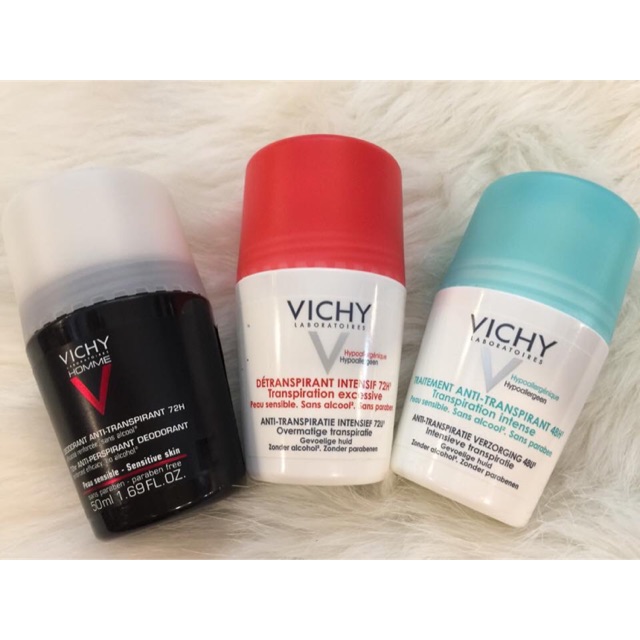 🌀🌀LĂN KHỬ MÙI VICHY TRAITEMENT ANTI-TRANSPIRANT 48H (50ML)🌀🌀 👉 Hiện nay có rất nhiều loại lăn khử mùi trên thị trường, nhưng Vichy-Pháp là cái tên được tìm kiếm nhiều nhất. 👉 Nếu như Etiaxil đứng đầu về dòng khử mùi đặc trị thì Vichy lại được ưu ái nhất trong dòng khử mùi hàng ngày. Trong khi các hãng lăn khử mùi thông thường chỉ có một vài loại lăn khử mùi, thì Vichy lại cho thấy độ đầu tư và am hiểu nhu cầu khách hàng về nhu cầu ngăn mùi và mồ hôi khi tung ra nhiều loại lăn khử mùi khác nhau 1. KHÔNG CHỨA CỒN 2. KHÔNG CHỨA PARABEN 3. KHÔNG MÙI HOẶC HƯƠNG NHẸ 4. THỰC SỰ KHÔ THOÁNG, KHÔNG GÂY Ố VÀNG 5. PHÙ HỢP VỚI DA NHẠY CẢM, DƯỠNG DA VÙNG DƯỚI CÁNH TAY – Lăn Khử Mùi Vichy Traitement Anti Transpirant 48h chứa các thành phần hữu cơ kiểm soát lượng mồ hôi thừa của cơ thể, ngăn mùi khó chịu, đặc biệt ở vùng nách, tạo cảm giac thoải mái, thông thoáng sẽ là sự lựa chọn hoàn hảo trong hè này cho bạn. – Lăn Khử Mùi Vichy Traitement Anti Transpirant 48h với khả năng chống mồ hôi mà không hề gây ra cảm giác khó chịu – Với hoạt chất chống mồ hôi cho phép sản phẩm hoạt động hiệu quả hơn ở từng lỗ chân lông, làm se khít lỗ chân lông, mịn màng làn da và làm mờ vết thâm – Lăn Khử Mùi Vichy Traitement Anti Transpirant 48h có tính kháng khuẩn, giúp da thông thoáng, lưu hương thơm lâu trong nhiều giờ liền – Mùi của lăn khử mùi Vichy không gây kích ứng và cũng không hề ảnh hưởng đến mùi nước hoa bạn đang dùng – Lăn khử mùi hôi nách Vichy không chỉ ngăn mùi mà còn diệt khuẩn, cho bạn vùng da dưới cánh tay mịn màng, khô thoáng 🌀Cách lựa chọn lăn khử mùi vichy cho phù hợp cơ thể: - Lăn khử mùi Vichy màu xanh: loại này được ưa chuộng trên thị trường, dành cho người nặng mùi nhiều mồ hôi, mùi của Vichy xanh nhẹ hơn so với những loại khác - Lăn khử mùi Vichy màu trắng: dành cho da ai cạo lông nách bị xước hoặc mụn ở nách. Sản phẩm gần như không mùi, được nhiều người yêu thích - Lăn khử mùi Vichy màu đen: dành cho nam, khử mùi suốt 72h, Lăn khử mùi Vichy màu đen dành cho nam - Lăn khử mùi Vichy màu đỏ: khử mùi cực mạnh 🌀Hướng dẫn sử dụng: - Dùng sau khi tắm, lăn nhẹ nhàng 1 – 2 lần vào vùng da dưới cánh tay.