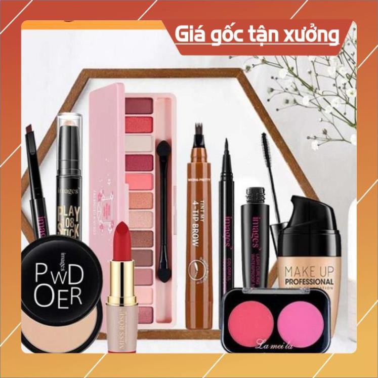Sản phẩm Bộ Trang Điểm 10 Món Đầy Đủ Bộ Makeup Phấn Phủ Kem Nền Phấn Má Phấn Mắt Son Lì Mascara Chì Kẻ Mày Kẻ Mắt Bút Tạo Khối hiện tại đang được bán online với giá tốt nhất trên thị trường là 300.000đ