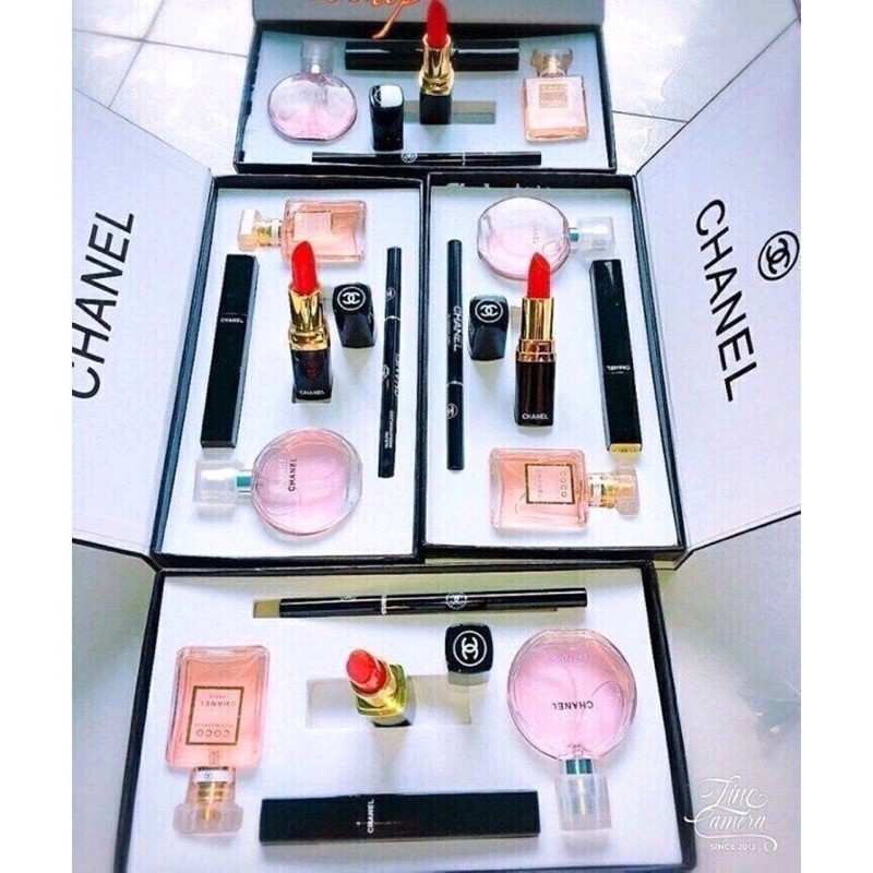 ✔Bộ mỹ phẩm 5 món cao cấp với kiểu dáng bắt mắt sang trọng, thiết kế màu sắc trang nhã giúp mang đến cho bạn vẻ thanh tú cuốn hút sau khi trang điểm ✔Bộ mỹ phẩm 5 món : kiểu dáng sang trọng, thiết kế hiện đại ✔Bộ mỹ phẩm 5 món bao gồm: – 2 Nước hoa 15ml – 1 Son color poids 8ml – 1 Mascara 6ml – 1 Chì kẻ mắt