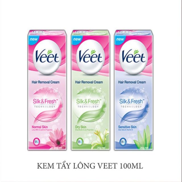 Kem tẩy lông Veet 100ml ****** Tác dụng: – Kem tẩy lông Veet được sản xuất tại Pháp. Sản phẩm rất được ưa chuộng tại Việt Nam. – Sản phẩm giúp làn da mềm mại, giàu độ ẩm và trơn láng hơn sau khi tẩy lông với hệ dưỡng ẩm, làm việc chỉ trong 3 phút. Bạn sẽ nhận thấy làn da trơn láng,ít gai hơn hẳn. – Phù hợp mọi loại da. – Dùng cho tẩy lông chân, lông nách rất là hiệu quả. Xuất xứ: France Dung tích: 100ml. Hạn sử dụng: 36 tháng.
