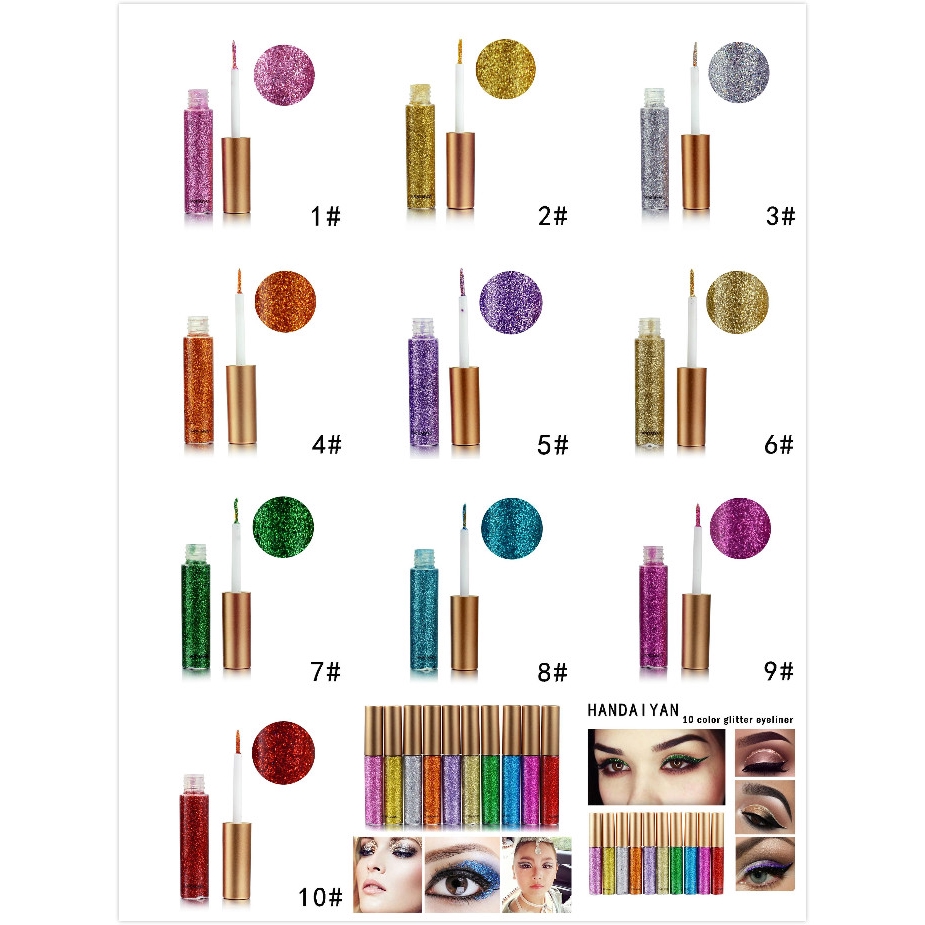 description: 100% brand new and high quality flashing eyeliner color: 10 color select net wt: 5 g can be used as eyeliner pen and eyeshadow pen portable size, easy to carry. product type: liquid glitter eyeliner and eyeshadow effect: long-lasting, water-tight package included: 1pc x eyeliner sku:mpf1401 if you want buy more than we listed, please contact us. There are so many useful and cheap item in our store. You can contact with us to get more detail of the goods . We are professional Shopee seller.