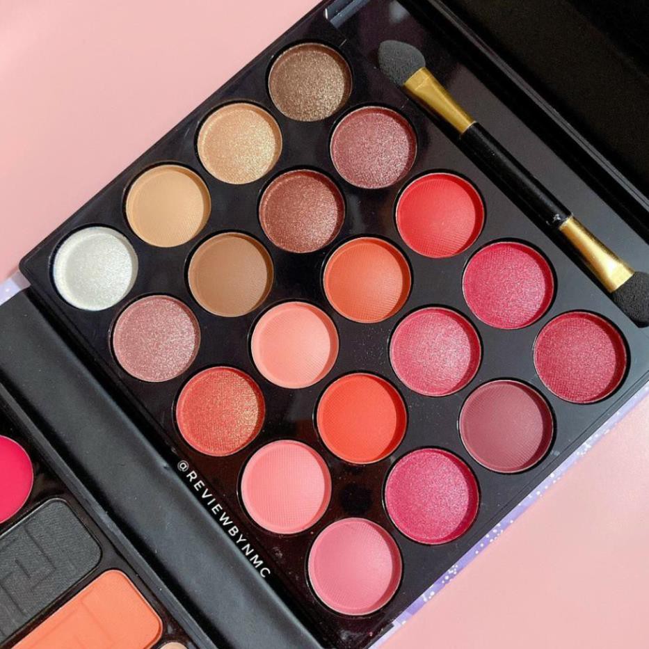 Bộ trang điểm nhiều món tone cam đào gồm những món Phấn mắt Phấn mắt Phấn phủ Kẻ mắt Kẻ mày Mascara Son Bộ cọ Hàng chuẩn chính hãng Xuất xứ Thái Lan Chuc cac ban gai luon xinh dep