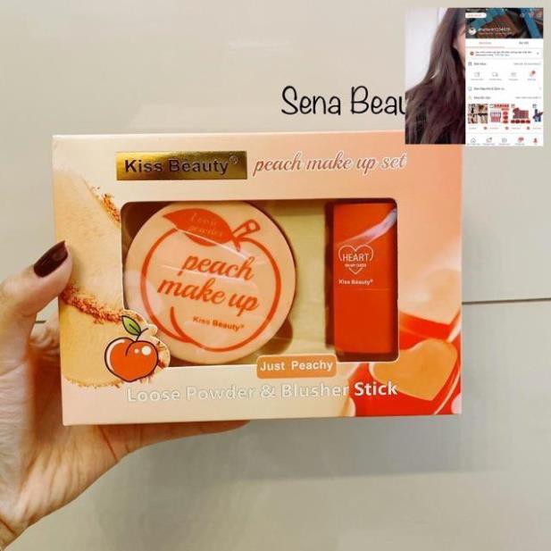 Sản phẩm Bộ Trang Điểm 2In1 Peach Make Up Set Của Kiss Beauty (Gồm Phấn Phủ + Thanh Phấn Má) hiện đang được bán tại Shopee.