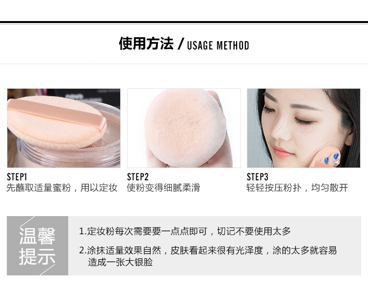 Brand type national goods brand Matte products No imports Brand novo Suitable for skin quality Normal specifications Special purpose cosmetics no Production license number cantonese makeup 20160269 Cargo no. 371 Color color Effective oil control China of origin Color classification 1#Ivory 371 Color classification 2#Light color (371) Color classification 3#Natural color (371) Color classification 4#Light purple (371) Whether cross-border exports are intended solely for source no Non special cosmetic record number guangdong g makeup net preparation word 2018199697 Category loose powder, powder Store can order goods all have, please teachers peace of mind order Cancelation of orders If you want to cancel the order after it is established, please apply for cancelation on your own initiative. we do not assist in cancelation of the order~ Shipping time (2) please make sure that the goods are delivered in 7 days after arrival. if they are not picked up in more than 7 days, the goods will be returned. Note before orderNote Strive to provide teachers with price and commodity advantages. if you are very insistent on pursuing 0 defects/0 defects in packaging, please bypass the standard-bearer Notes on return of goods (1) please apply within 7 days and not accept refund of return for more than seven days~ (2) refund back and forth freight non-us defects shall be borne by the buyer ~supply, please order~ ■We can ask you for any questions before buying them. we will answer any questions about your baby, including quality, effectiveness, etc., in accordance with the purpose of customer supremacy and credibility ■The store's treasures are all for physical filming, have done everything possible to restore the truth.However, because the filming is affected by weather, flash problems and so on, the picture display is influenced by computer software, monitor and so on, there may be weak color difference, not quality problem. 1) we support mixed batch 2) post-sale issues: wholesale profits are low and cannot afford to sell. if the baby is dissatisfied or the road is damaged, exchange of goods is acceptable but no refund or diskount is acceptedFreight costs incurred by buyersSeller does not bear freight 3) receiving address and name of consignee. please give details, especially the telephone, and make sure that it is clearAfter the goods are sent, they are to be transferred or returned for buyer reasons (4) not accept low marks: if you look at the above questions, you can ask them directlyWe don't accept gifts: no, slow delivery, bad attitude of couriers, things don't give as much power as they think 5) as there are physical stores selling goods, we will not rule out any shortage after ordering the goods, we will deliver them strictly according to our orders, and if there is a shortage, we will contact the buyers 6) with regard to products, physical pictures, but not excluding color differences due to the displayI hope you