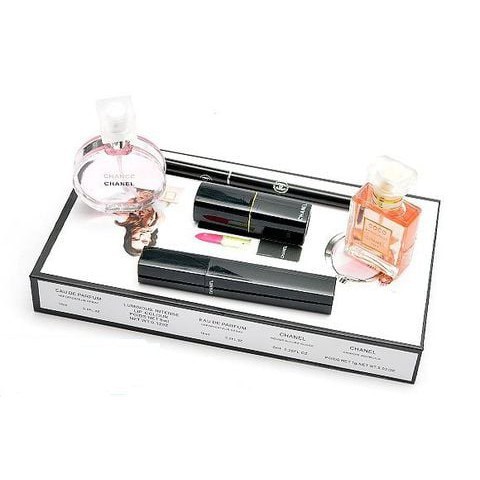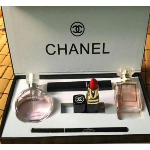 Set chanel 5 món 💓 lung linh, làm quà tặng cực thíc ấy 😍 có cả nước hoa , masscara , son , kẻ mắt nước ... Còn gì bằng 😚 ➖SET CHANEL 5 MÓN ➖ ✔Bộ mỹ phẩm Chanel 5 món : kiểu dáng sang trọng, thiết kế hiện đại ✔Bộ mỹ phẩm Chanel 5 món bao gồm: – 2 Nước hoa EAU DE PARFUM(thơm cực lâu) – 1 Son color poids – 1 Mascara – 1 Chì kẻ mắt