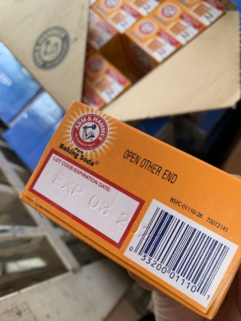 BAKING SODA VÊ SẴN /-heart /-heart /-heart Sỉ 28k /1 hộp 454gr Xuất Xứ: Trung Quốc HSD: 03/2021 - Pure Baking Soda Arm & Hammer với 100% bột Banking Soda nguyên chất từ thương hiệu nổi tiếng của Mỹ. - Sản phẩm có rất nhiều công dụng bất ngờ trong làm đẹp và gia đình. - Bạn có thể làm bánh từ bột Baking Soda hay đơn giản chỉ là làm trắng hàm răng của bạn. - Rất dễ sd và cực an toàn cho sức khỏe. Công dụng 1. Khăn tã hoặc thùng rác có mùi? Đừng lo lắng, đổ một chút baking soda vào phía dưới và cứ giữ như vậy 2. Sofa bi bẩn, hôi và không được sạch sẽ? Rắc chỉ một chút ở giữa đệm và nó sẽ trở nên sạch sẽ chỉ trong một hoặc hai ngày. Sau đó, dùng máy hút bụi hút hết những tàn tích nhé 3. Dùng thay thế cho Baking Powder: Bạn có biết bạn có thể thay thế baking soda cho bột nở bằng cách trộn nó với kem tartar hoặc giấm? 4. Chế ra dung dịch rửa: Ngày càng có nhiều loại thuốc trừ sâu và sáp được sử dụng trong hoa quả. Chỉ cần đổ nước vào bồn rửa và pha với baking soda sau đó rửa trái cây và rau quả 5. Làm sạch và khử hôi cống rãnh: sử dụng một Soda Baking và giấm rửa để làm sạch cống rãnh của bạn, cũng như giữ nó cân bằng trong nhiều năm. 6. Cống rãnh thoát nước bị tắc: đổ baking soda để lấp đầy các lỗ cống, đổ vào một vài chén giấm và để cho nó nổi bong bóng. Để đó trong một thời gian (30 phút) Và để cho các phản ứng có ga nó làm việc sau đó rửa bằng nước nóng. Lặp lại nếu cần thiết. 7. Làm sạch chậu và bồn tắm : bạn hãy thử dùng baking soda xem, nó tốt hơn rất nhiều sản phẩm tẩy rửa đấy và lại vô hại nữa. 8. Làm sạch máy giặt: sử dụng một cốc baking soda và 1 chén dấm trắng vào máy giặt ... 9. Làm sạch ấm cafe 10: làm sạch bếp : hoà vào với nước rồi cọ