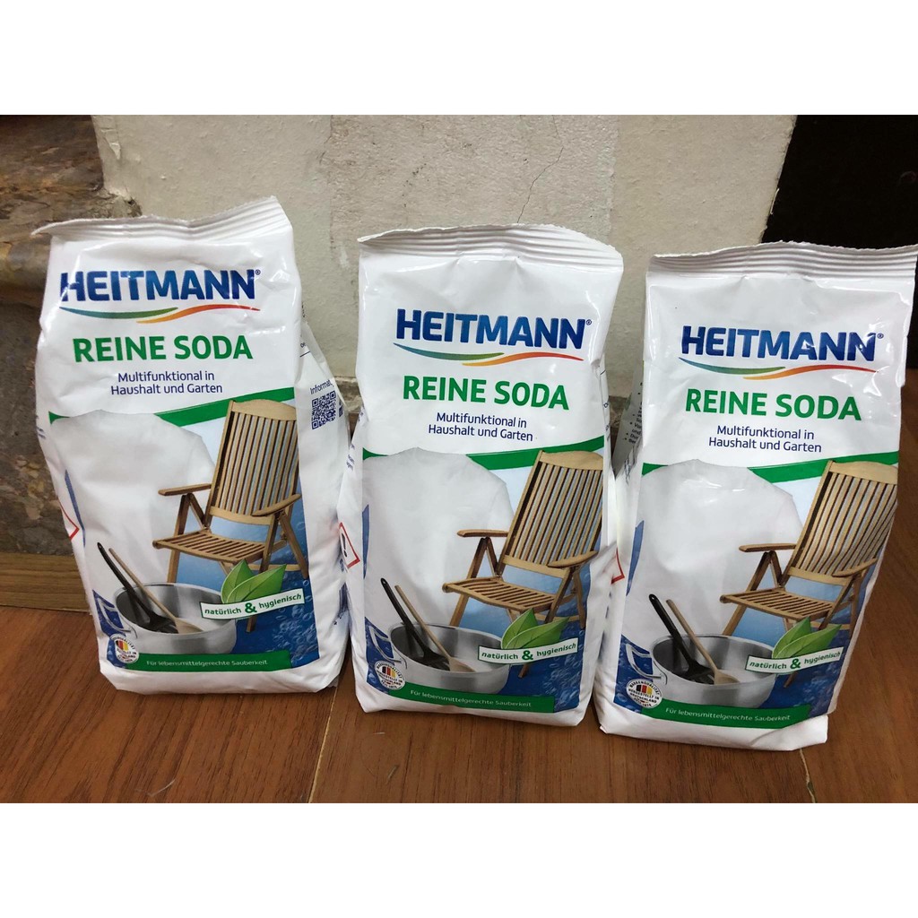 Cái này chắc nhà nào cũng cần đấy ạ. Bột soda HEITMANN - một sản phẩm của Đức nổi tiếng từ năm 1874 sẽ giúp các chị em dễ dàng lau chùi, cọ rửa các dụng cụ nhà bếp dễ dàng nhẹ như lông hồng nhé! Hiệu quả cực kỳ trong việc Vệ sinh hút mùi, cọ đáy nồi và rất nhiều vật dụng trong gia đình Xuất xứ : Đức Trọng lượng : 500g Giá :210k Dùng được nhiều lần ạ! - Máy hút mùi mà ko được vệ sinh thường xuyên thì nó sẽ ko còn tác dụng đâu ạ. Vệ sinh sạch như mới chứ ko phải lau chùi qua loa bên ngoài nhé! Cách dùng bột Soda tẩy rửa đa năng để tẩy vết bẩn, mỡ dầu, các mảng bám trong bếp...) 1.Pha 1-2 thìa soda vào 5L nước. 👉Cho bình sữa, đồ dùng như thìa, dĩa ngâm qua rồi rửa lại bằng nước nóng sẽ bóng sạch khử cả mùi tanh sữa, hành, cá.... 👉Với nồi chiên, chảo mỡ v.v.. Bỏ vào rồi đun lên một lúc sau đó tráng lại bằng nước nóng thì sáng bóng. 👉Đồ dùng đựng mứt (đựng đồ ngọt) chỉ cần tráng qua với nước pha bột này rồi rửa lại bằng nước nóng. 2. Với cách pha 4-5 thìa trong 5 lít nước nóng 👉Dùng để giặt tẩy vết bẩn cho đồ lao động, tất, khăn trải bàn, ga giường.... 👉Lưu ý không dùng cho đồ bông len mềm hoặc đồ dễ phai màu. 3. Với công thức 1-2 thìa/10 lít: 👉Cũng dùng để ngâm làm sạch vết bẩn quần áo: Cho soda vào xô chậu nước ấm khoảng nửa tiếng sau đó cho quần áo vào ngân qua đêm ngày mai giặt lại. 👉Với những vết máu tươi thì dùng nước lạnh hơn để ngâm. 4.Công thức 3g/ 1l nước ấm 👉Hoặc dùng soda với nước ấm lau tường, cửa cổng, cửa nhà, nền gạch rêu... 👉Dùng 3g/ 1l nước ấm, ngâm khoảng 1-2 tiếng những chậu đựng hoa bị nước vôi hoá (mảng bám màu trắng, cứng) sẽ tan ra hết. 👉Ngoài ra các mẹ có thể dùng để vệ sinh tủ lạnh, lò vi sóng và những dụng cụ nhà bếp khác!