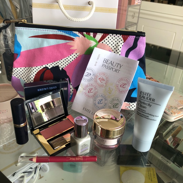 Quá hời cho 1 set estee lauder ý ạ. Chưa đến 1 triệu mà đủ bộ trang điểm 6 món và túi đựng siêu chanh xả nha 1, sữa rửa mặt estee lauder perfectly clean 30ml 2, kem estee lauder resilience lift 15ml nâng cơ chống nhăn 3, tinh chất trẻ hoá và làm mịn da Estee lauder perfectionist Pro 7ml 4, bút chì kẻ viền môi 5, son màu 430 6, phấn má hồng