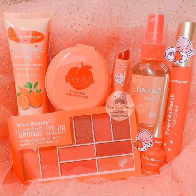 Nguyên bộ makeup tone cam siêu xinh 🍊🍊 - Kem nền - Phấn phủ - Son sáp - Xịt khoáng - Mascara - Kẻ mắt - Phấn mắt & phấn má