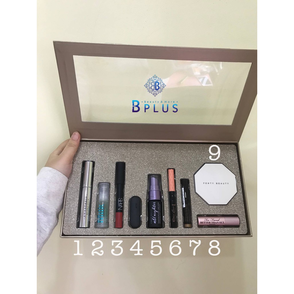 LƯU Ý: Khách thánh toán nhận hàng tiền mặt, thẻ tín dụng chọn combo phân loại thường. Khách thanh toán Airpay, ví shopee chọn combo phân loại Airpay. ⚡Combo 7+9: #550k Phấn bắt sáng 2 màu FENTY BEAUTY by Rihanna Killawatt Freestyle Highlighter in Mean Money/Hu$tla - FULLSIZE ($36~1080k) kèm Phấn mắt nhũ dạng thỏi Laura Mercier Caviar Stick Eyeshadow in Metallic Taupe (chrome taupe) - Mini 1 ml (fullsize $29~870k/1.64g) ⚡Combo 1+6: #435k Gel lông mày dạng trong Anastasia Beverly Hills Clear Brow Gel - FULLSIZE ($22~660k) kèm Bút kẻ mắt nước Benefit Cosmetics Roller Liner Waterproof Liquid Eyeliner - Mini 0.5 ml (store $12~360k) ⚡Combo 2+3: #435k Son bút chì NARS Velvet Matte Lipstick Pencil in Dolce Vita (dusty rose) - FULLSIZE 2.4 gr (store $27~810k) kèm Kem lót dưỡng ẩm Milk Makeup Hydro Grip Primer - Mini 4 ml ($15~450k/10ml) ⚡ Combo 4+5+8: #280k Xịt khoá make up Urban Decay All Nighter Long-Lasting Makeup Setting Spray - Mini 15ml ($15~450k/30ml) kèm Son dưỡng hữu cơ Bite Beauty Agave+ Daytime Vegan - Mini 1.3ml ($14~420k/4.2g) kèm Mascara Too Faced Better Than Sex - Mini 3.9g - (store $13~390k) Tớ chỉ có 5 set thôi nên chị em hãy chốt nhanh để không bị "duyên mình lỡ" nhá 😘