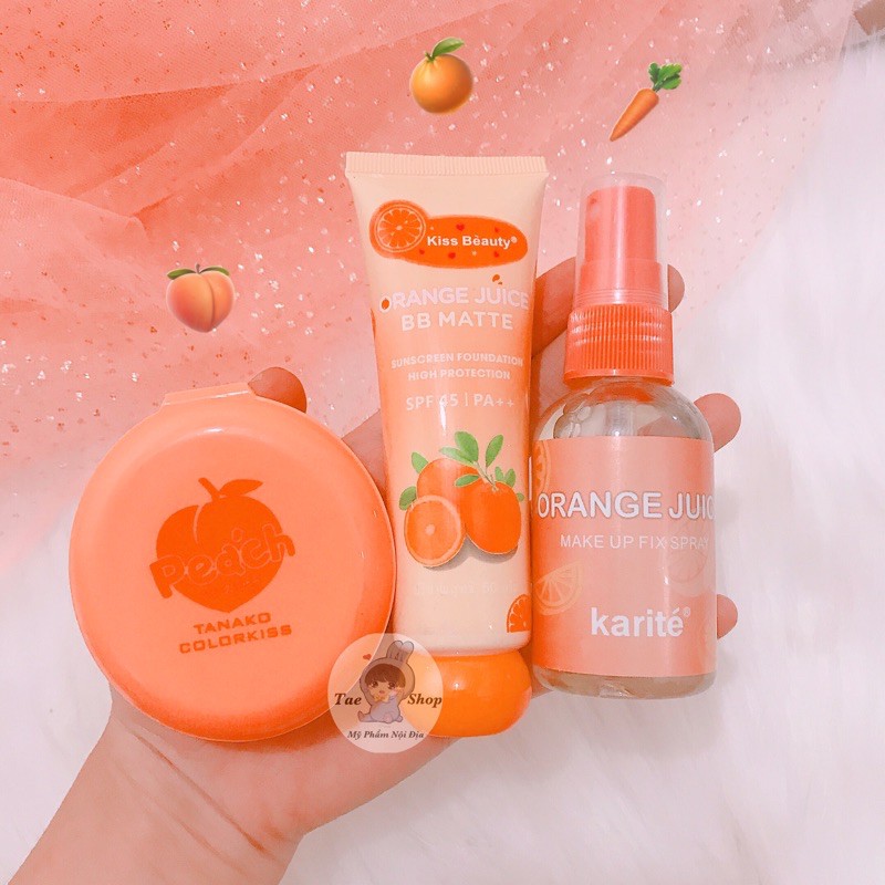 🍑 Set Makeup Cho Da Thường Ngày 🍑 Gồm 3 món : 🍑 Kem nền cam : che phủ khuyết điểm 🍑 Phấn phủ đào : kiềm dầu 🍑 Xịt khoáng : giúp lớp nền lâu trôi