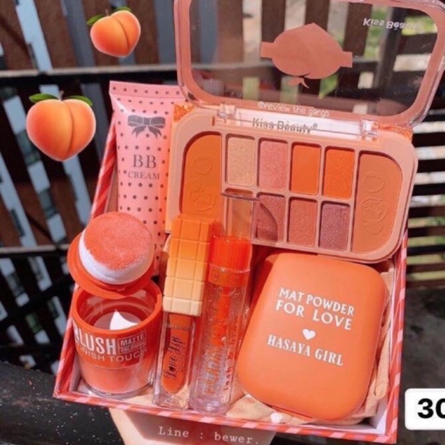 Set gồm 1 bảng mắt peach 10 ô 1 kem lót bb peach or orange 1 son kem lì 1 serum dưỡng mi 1 phấn nền phủ kiềm dầu 1 má hồng bột .......