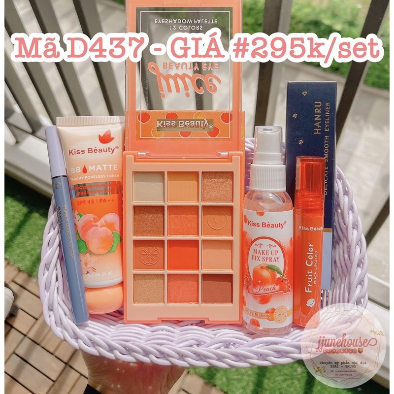 🍑 Mã D437 - Set makeup xinh xắn ✨Set gồm các sp sau: - BBCream Kissbeauty - Bảng phấn mắt Juice Kissbeauty - Xịt khoáng khoá makeup - Eyeliner Hanru - Son kem lì Kissbeauty ⛔️ Hàng set makeup #KHÔNG #THỂ #THAY #ĐỔI #HOẶC #THÊM #BỚT #SẢN PHẨM. Các bạn mún mua sản phẩm theo ý thích, có thể mua lẻ từng món giúp shop nha♥️ Shop đều có bán lẻ tất cả sản phẩm trong set ♥️ 〰️〰️〰️〰️〰️ 🌸Thiên đường mỹ phẩm Thái - Trung ▪️Hàng có sẵn ▪️Hàng mới về mỗi tuần ▪️Chỉ bán hàng chính hãng 🚚Ship hàng COD toàn quốc