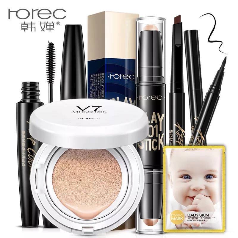 BỘ MAKEUP V7 TRONG SET BAO GỒM: + 1 MASCARA + 1 CHE KHUYẾT ĐIỂM 2 ĐẦU + 1 KẺ MÀY NGANG + 1 KẺ MẮT NƯỚC + 1 PHẤN NƯỚC