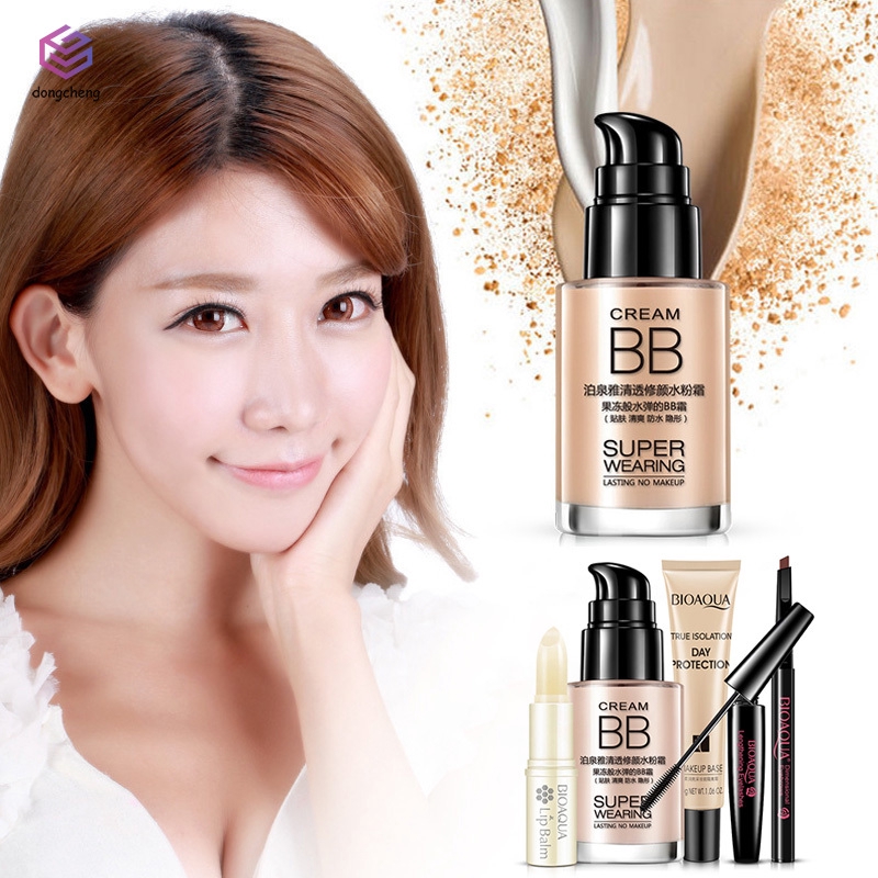 COMBO MAKEUP BIOAQUA 05: 1 SET BAO GỒM: + 1 MASCARA MẢNH BIOAQUA + 1 CHÌ KẺ MÀY NGANG BIOAQUA + 1 BB CREAM BIOAQUA + 1 KEM LÓT BIOAQUA + 1 SON SÁP