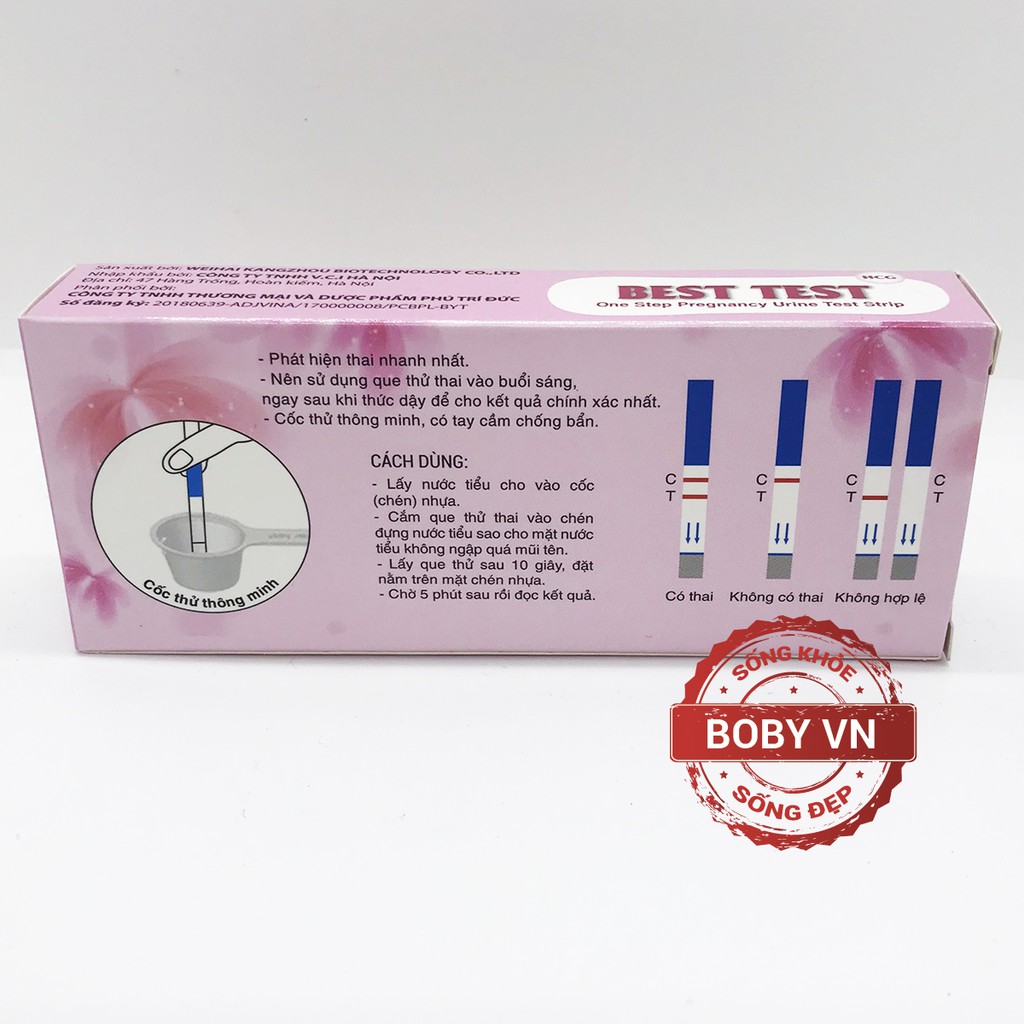 👌 Que thử thai Best Test sử dụng để thử thai nhanh chóng tại nhà. Bạn có thể dùng que thử thai vào bất kỳ thời gian nào trong ngày (sớm nhất là vài ngày sau khi bị chậm kinh) nhưng tốt nhất là lúc đi tiểu vào buổi sáng. Một số loại que thử nhạy cảm có thể phát hiện mang thai trước khi bạn có dấu hiệu chậm kinh nhưng kết quả có thể không chính xác. 📙 5 bước thử thai bằng que chip chips buổi sáng như sau Bước 1: Lấy nước tiểu vào trong cốc. Bước 2: Xé bao nhôm đựng que thử thai. Bước 3: Cầm que thử thai trên tay theo hướng mũi tên chỉ xuống Bước 4: Cắm que thử thai vào cốc đựng nước tiểu sao cho mặt nước tiểu không ngập quá mũi tên. Bước 5: Chờ 5 phút bắt đầu đọc kết quả: 👉 Sau 5 phút, lằn vạch ngang màu hồng sẽ hiện ra trên que thử thai báo hiệu cuộc thử nghiệm đã hoàn tất. Nếu vạch hồng thứ hai hiện ra dưới vạch hồng đầu tiên, đó là kết quả bạn đã có thai. Nếu không có vạch hồng thứ hai hiện ra, bạn không có thai. 👉 Một số lưu ý cần biết khi sử dụng que thử thai Best Test ✅ Que thử thai Best Test giúp phát hiện thai sau từ khi 7 đến 10 ngày kể từ khi giao hợp. ✅ Không dùng Que thử thai Best Test đã lấy ra khỏi bao nhôm > 10 phút. ✅ Nên lấy nước tiểu vào sáng sớm sau khi thức dậy, bởi vì lúc đó có nhiều hCG nhất. ►► Mời quý khách Chat/Inbox hoặc gọi Hotline với BOBYVN để được nghe tư vấn thêm về sản phẩm ❤️❤️ ======================= BOBYVN Cam kết: 🌞🌞 🎯 Luôn tư vấn tận tâm, nhiệt tình với tâm của người Bác Sỹ 🎯 Đảm bảo tất cả sản phẩm luôn chính hãng 100%, nguồn gốc xuất xứ rõ ràng, nói không với hàng giả, hàng nhái, hàng kém chất lượng 🎯 Sản phẩm luôn có hạn sử dụng dài 💲 Giá cả luôn hợp lý, cạnh tranh, tiết kiệm cho Quý khách hàng ► Quy định đổi trả 🌞 Sẵn sàng đổi trả hoặc hoàn lại tiền cho khách trong 48h kể từ ngày nhận hàng với 1 trong các lý do sau: - Sản phẩm lỗi - Hư hỏng trong quá trình vận chuyển