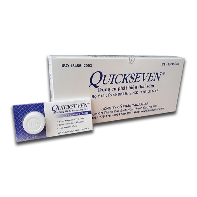 Dụng cụ phát hiện thai sớm Quicktana – Thử là phải đúng: Là que thử thai được Tanaphar nghiên cứu và sản xuất, được bộ y tế Việt Nam cấp ĐKLH số:SPCĐ – TTB-313-17. Que thử thai Quicktana đạt tiêu chuẩn: ISO: 13485:2016. Một bộ dụng cụ phát hiện thai sớm Quicktana phát hiện thai sớm Quicktana gồm có: 1 que test và 1 cốc nhựa. Tiến hành test thửu với dụng cụ phát hiện thai sớm QUICKTANA Lấy nước tiểu vào buổi sáng ngay khi thức dậy (lúc đó hCG là hoóc môn giúp phát hiện thai có nồng độ cao nhất). Lấy que thử ra khỏi túi, phải dùng ngay trong vòng 10 phút (mỗi que thử chỉ sử dụng một lần). Nhúng que thử vào cốc nước tiểu theo chiều mũi tên, sao cho mặt nước tiểu không ngập quá đầu mũi tên in trên que thử. Sau 10 đến 15 giây, lấy que thử đặt nằm ngang trên mặt phẳng khô, sạch, đọc kết quả sau 5 phút và trước 10 phút. Đọc kết quả ĐÃ CÓ THAI: Trên que thử xuất hiện 2 vạch ngang màu hồng. KHÔNG CÓ THAI: Trên que thử xuất hiện 1 vạch ngang màu hồng. KHÔNG ĐẠT: Trên que thử không xuất hiện vạch ngang màu hồng nào (do thao tác thử sai, mẫu nước tiểu không đạt, hoặc bảo quản không đúng. Nên thử lại bằng que thử mới. Lưu ý: Một số ít trường hợp cho kết quả có thai giả do người thử đang dùng các loại thuốc an thần, lợi tiểu, kháng co giật, thuốc có chứa hCG hoặc người (chiếm tỷ lệ nhỏ) có nồng độ hCG cao hơn bình thường… Đóng gói: 1 tes/hộp nhỏ, 12 tes/hộp to, 540 tes/kiện Xuất xứ: Việt Nam Sản phẩm này không phải là thuốc, không có tác dụng thay thế thuốc chữa bệnh #quethuthai #dungcuthuthai #rungtrung #nhanh #thuthai #quethửthai #dụngcụthửthai #thửthai #quickstick #chipchips #fastick #nghen #non #traonguoc #bau #mangthai #bầu #mangthai #abon
