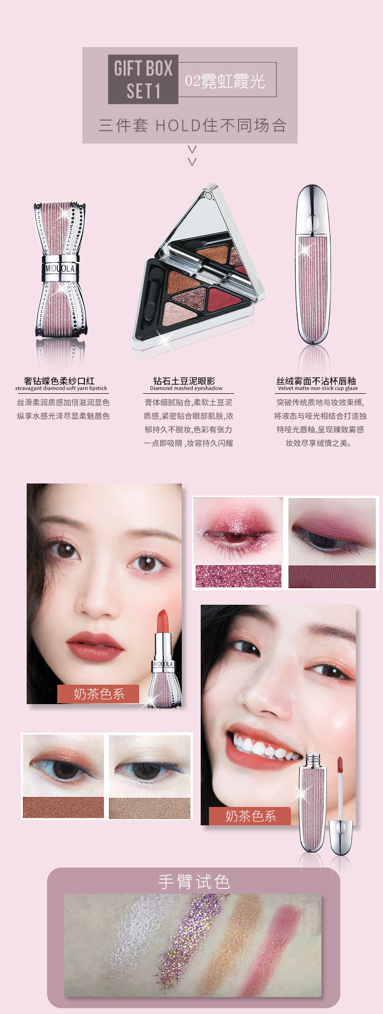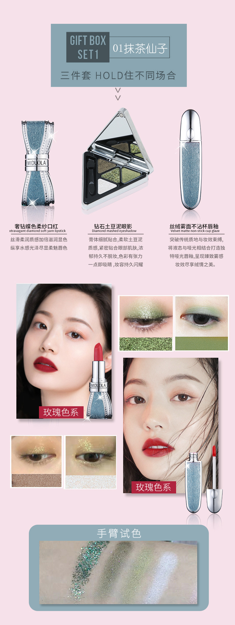 Brand: miduola/baby dora Model: mood diary 3pcs Efficacy: pull firming Applicable population: ms. Number of colors: monochrome For skin: universal Color classification: 1#Matcha fairy, 2#Neon glow Category: makeup set Dear: The goods in the store are basically If there's a shortage of goods, talk about notice We have checks before sending them, but occasionally careless, if there is a problem of mis-mail and low quality, we should inform you of the first time, the store is very responsible.If there is unsatisfactory place, please contact us in the above chat, one straight online service.