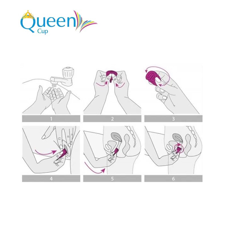 Giới thiệu sản phẩm Cốc Nguyệt San Queen Cup ( size S ) Size S cho các chị em dưới 25 tuổi và các chị em chưa có em bé. Size L cho các chị em trên 25 tuổi và các chị em đã sinh baby rồi "Đã đến lúc từ bỏ những chiếc băng vệ sinh bẩn, đầy hóa chất để tiếp nhận một sản phẩm văn minh hiện đại mang lại nhiều lợi ích sức khỏe rồi các chị/em ạ" Có hơn 12 Tính năng tuyệt vời – Tuyệt đối an toàn ! - Chất liệu 100% Sillicone y tế cao cấp, kháng khuẩn tuyệt đối, mềm mại, chống rò rỉ cao - Không còn nỗi lo mẩn ngứa như khi sử dụng băng vệ sinh - Chất liệu cốc mềm mại, không gây cộm hay khó chịu khi đeo - Thoải mái đi bơi, đi biển, tập thể dục, vận động, diện đồ bó sát vào những ngày đèn đỏ - Thoáng mát, sạch sẽ, vệ sinh - Tiết kiệm chi phí cho bạn - Cách sử dụng, bảo quản cốc dễ dàng, đơn giản và an toàn Sử dụng Rất đơn giản ! 6 Thao tác đơn giản để đưa cốc vào Rửa tay trước khi thao tác Rửa cốc bằng nước sôi 2-5p Hai Tay Cầm Cốc Gập gọn cốc hình chữ V Nhẹ Nhàng Đưa cốc vào trong, Cốc sẽ mở ra và vừa khít với thành âm đạo Thao Tác Đơn Giản Để Đưa Cốc Ra - Khi cần tháo ra, dùng cơ âm đạo để đẩy cốc ra ngoài - Khi chạm vào cuống cốc, cầm đáy cốc và bóp để tháo ra ngoài - Rửa cốc bằng nước sạch hoặc xà bông nhẹ dịu (tránh dùng xà bông khử trùng và có mùi hương) và đưa trở lại vào bên trong Hướng dẫn bảo quản - Với lần đầu tiên sử dụng: Trụng cốc qua nước sôi (trên 100 độ C) trong vài phút - Trước và sau kỳ kinh nguyệt, trụng cốc qua nước sôi trong vài phút - Tránh không cho cốc nguyệt san vào máy giặt, máy sấy hay máy rửa bát