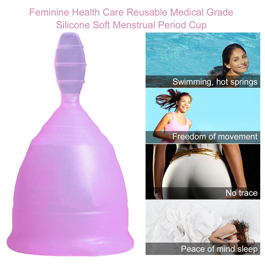 menstrual cup for women hygiene product medical grade silicone vagina use Type?menstrual cup Color?random Material?silicone Weight?20g Size S?4.5cm x 7cm L?47cm x 7.5cm Package includes?1pc menstrual cup