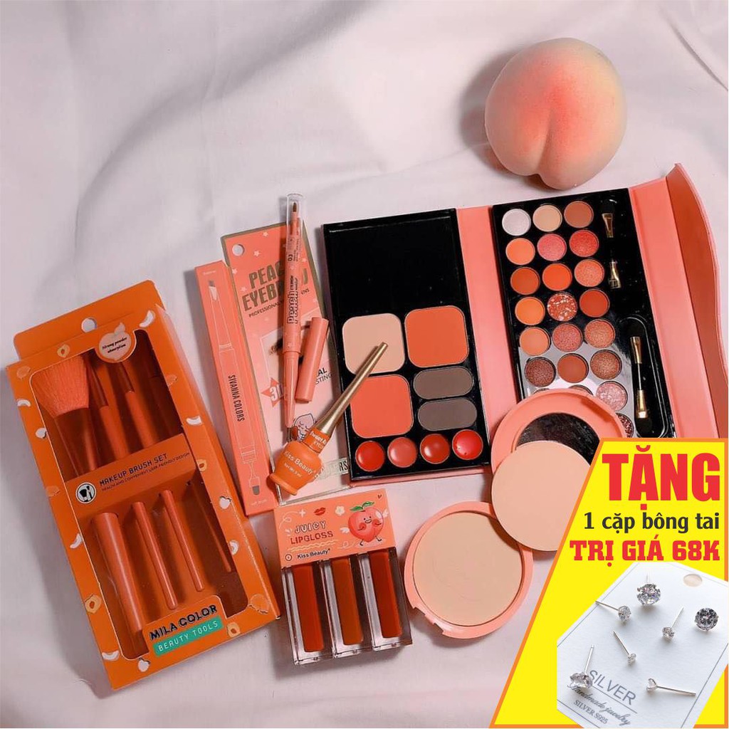 <ul> <li>4 cây cọ kèm box đựng</li> <li>1 bảng phấn ( phấn mắt + phấn má + high lighter )</li> <li>1 kem nền kissbeauty</li> <li>1 son kem lì , lên màu chuẩn , không gây khô môi</li> <li>1 phấn phủ kiềm dầutặng kèm bông phấn</li> <li>Shop bán hàng thái lan</li> <li>Bao hàng chuẩn Thái ạ</li> <li>Shop COD toàn quốc</li> </ul>