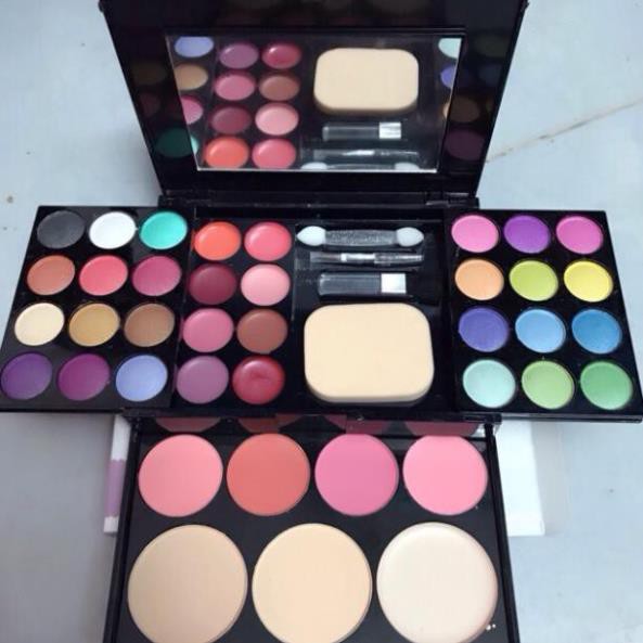 Bộ Kit Trang Điểm ADS 40 Món với kiểu dáng sang trọng, thanh lịch, hợp thời trang, thiết kế các ngăn độc đáo, ngăn trên là màu mắt, ngăn dưới là phấn nền và má hồng, một chiếc gương lớn tiện lợi cho việc trang điểm của bạn, dễ dàng mang theo bên mình. Sản phẩm bao gồm: 24 màu mắt, 04 má hồng, 08 màu son môi, 03 màu phấn phủ kèm cọ, bông phấn và gương trang điểm.